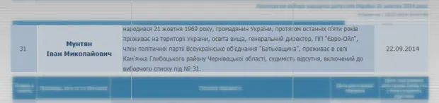 З липня 2011 року Мунтян – голова Чернівецької організації ВО "Батьківщина". На парламентських виборах 2014 року був № 31 у списку Тимошенко. При чому в списку він виявився вище, ніж багато соратників Тимошенко, як Михайло Ливинський, Андрій Сенченко або Андрій Павловський