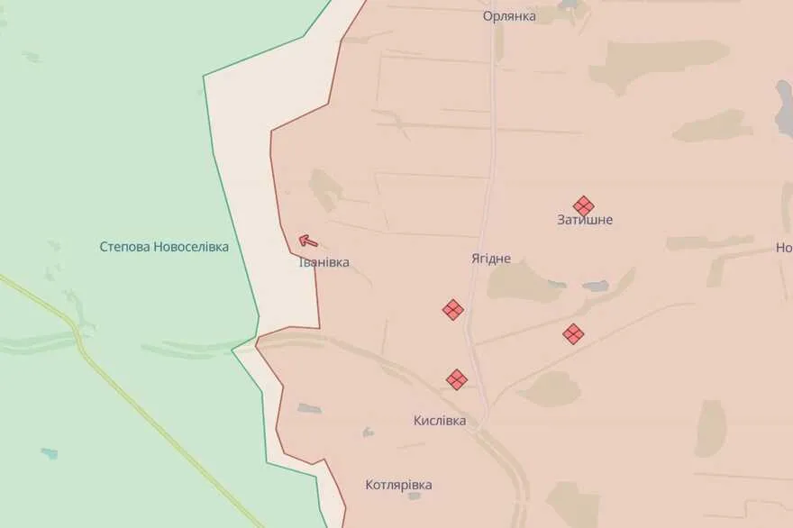 Аналітики внесли зміни на бойову мапу: село Іванівка у червоній зоні, що означає, що наразі воно перебуває під контролем окупантів.