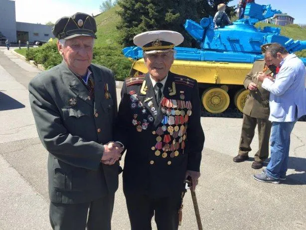 Ветерани Червоної армії та УПА публічно потисли руки під час вшанування загиблих під час Другої світової війни у 2015 році / Фото: Facebook