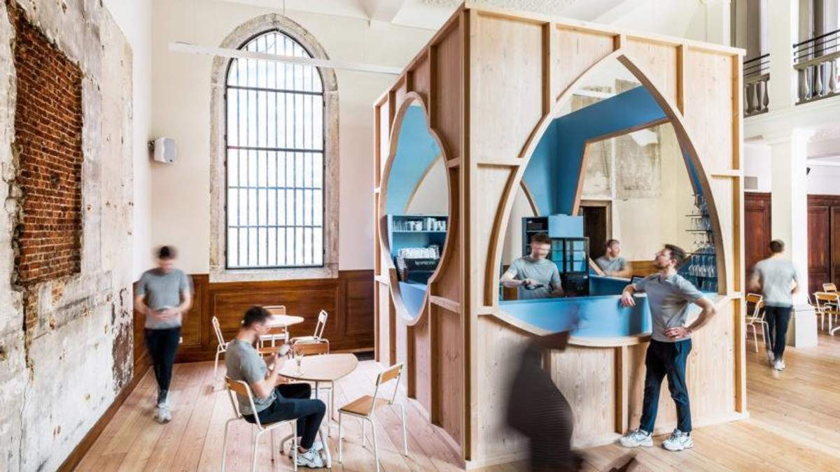 Незвичне поєднання кольорів і фактур у кафе в соборі в Антверпені