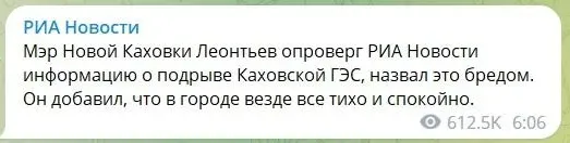 Ще через кілька годин офіційні російські ЗМІ почали публікувати коментарі того ж "мера", але вже з іншим наративом. Мовляв, у Новій Каховці нічого не трапилося.