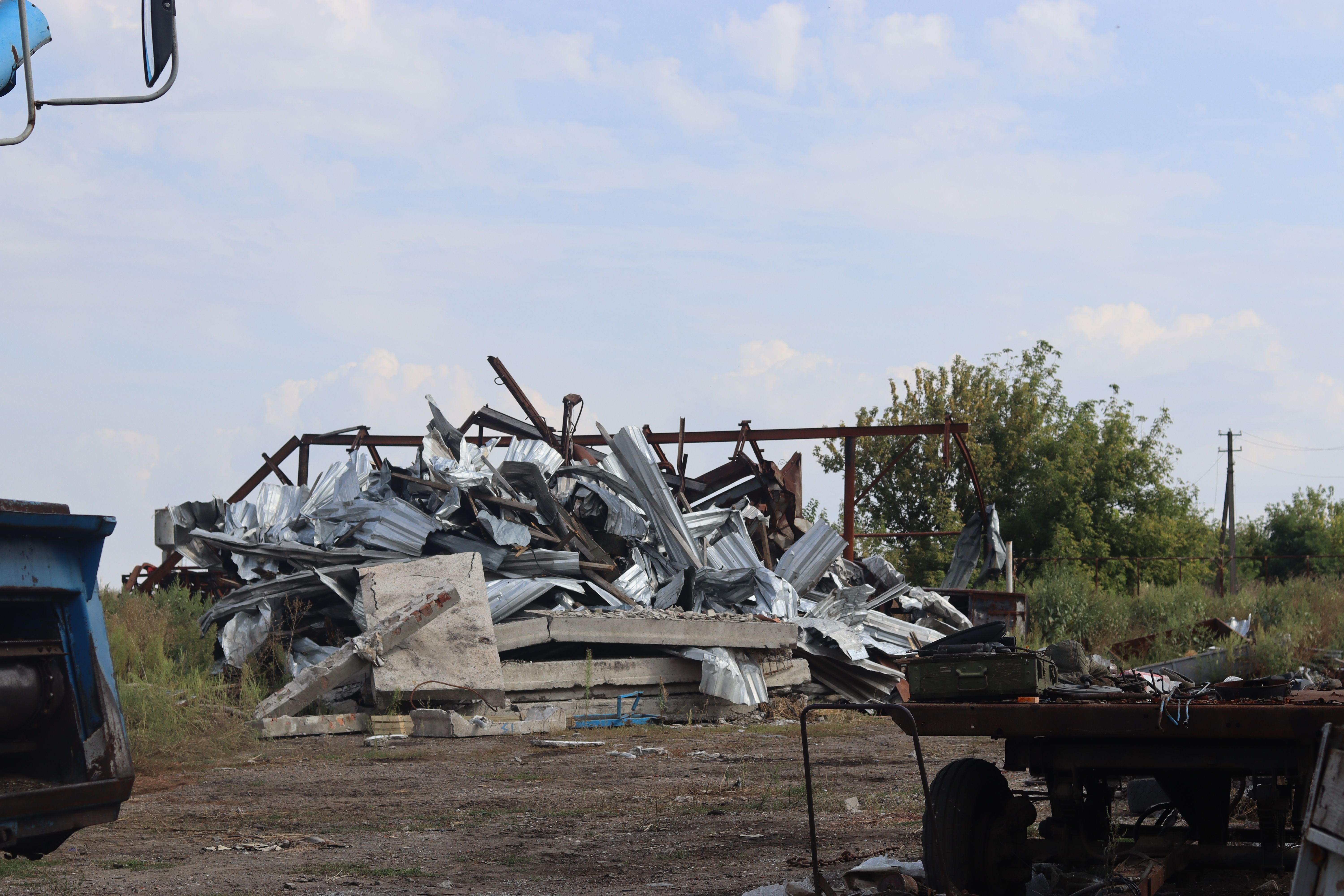 Що точно ще лишилося – завіси від ящиків з боєприпасами. Дерев'яні ящики горіли, а залізні завіси тепер вкривають землю на підприємстві. Більшість приміщень – зруйновані, не в останню чергу через те, що деякі з них росіяни використовували як склади для техніки та боєприпасів.