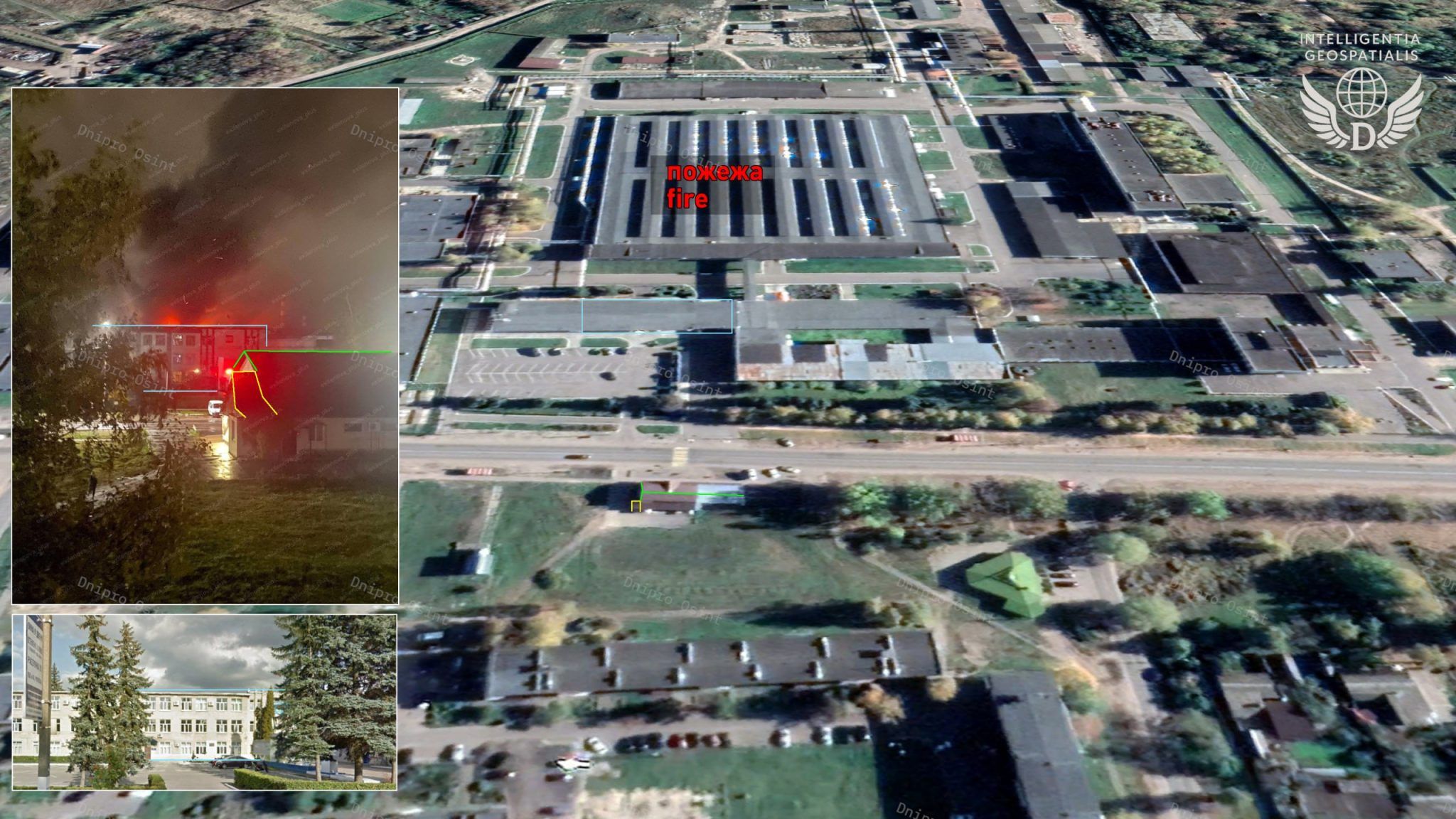 Місце пожежі на заводі "Електродеталь" після атаки / Фото Dnipro Osint