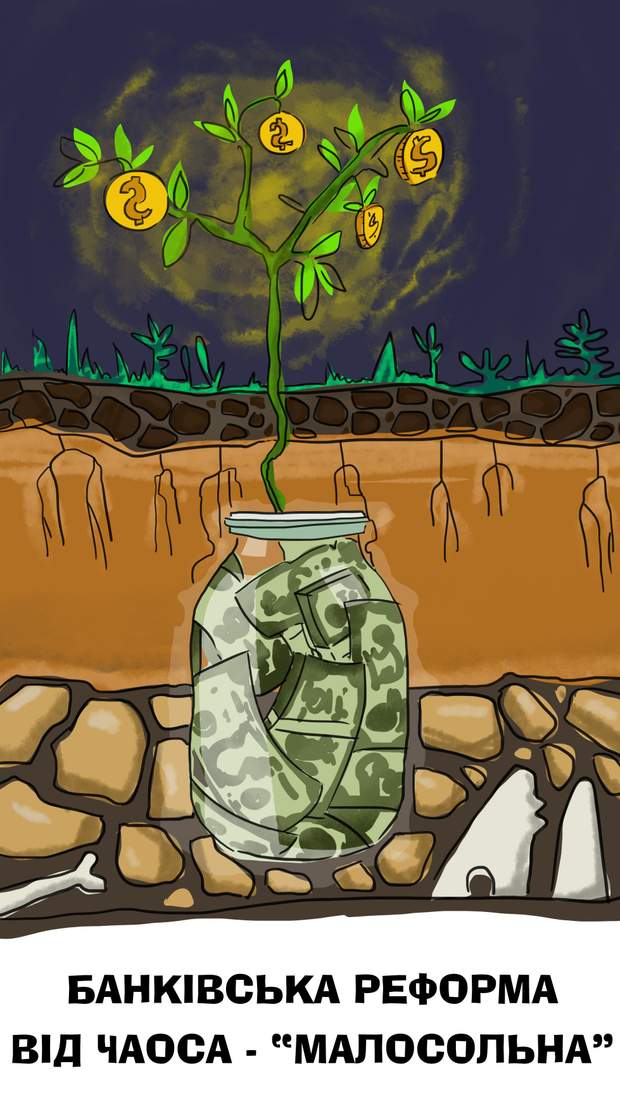 "Поки огородники збирають урожай, суддя Микола Чаус саджає у себе на ділянці розсаду. Може і зійшло б якесь грошове дерево по весні, чи хоча б монетний кущ, але детективи НАБУ зруйнували всі плани на багатий урожай, знайшовши баночку з зеленими американськими "саджанцями", – іронізує авторка карикатури.