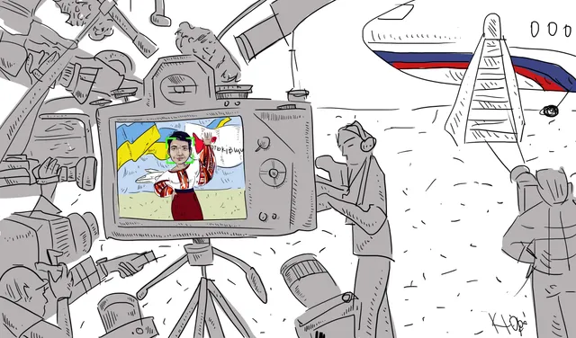 Карикатуристка 24 Каналу Христина Юра переконана: разюча картинка зустрічі української льотчиці Надії Савченко в Києві та російських ГРУшників у Москві — це начоний приклад інформаційної війни.