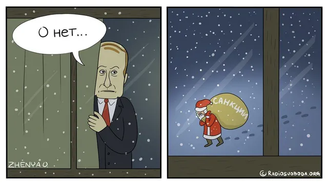 Санкції карикатурист зобразила як подарунок Володимиру Путіну до Нового року, повідомляє Радіо Свобода.