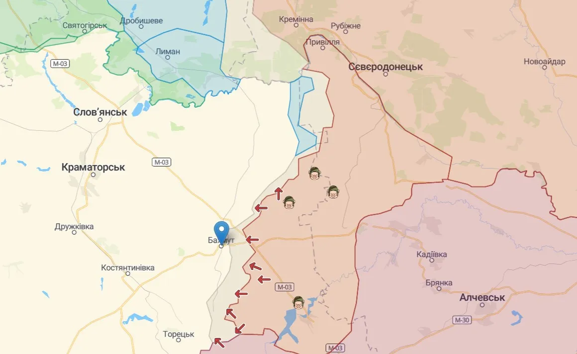 Ворог намагається наступати біля Бахмута / Скриншот карта Deepstate
