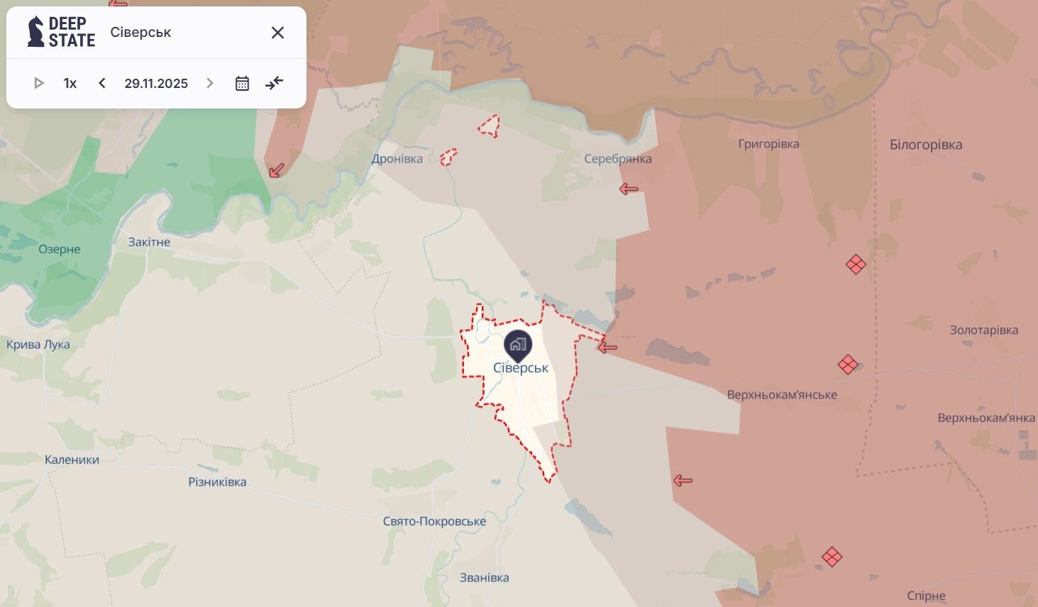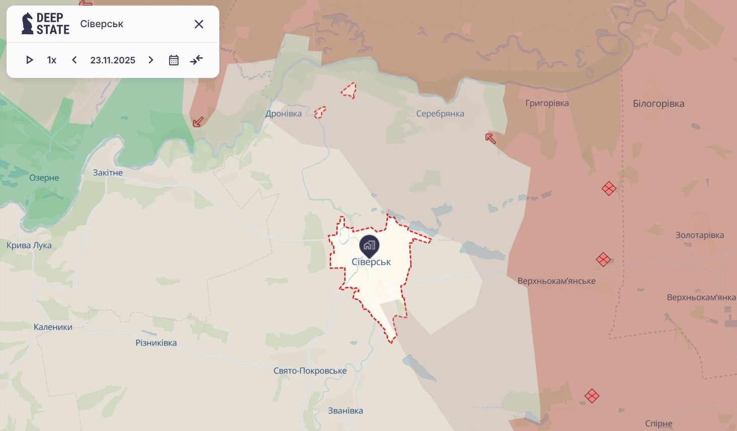 В районі Сіверська ситуація також дуже важка. Тижнем раніше росіяни проривалися у місто, через що на півдні Сіверська утворилася сіра зона. Минулого тижня вона розширилася й охопила схід міста.