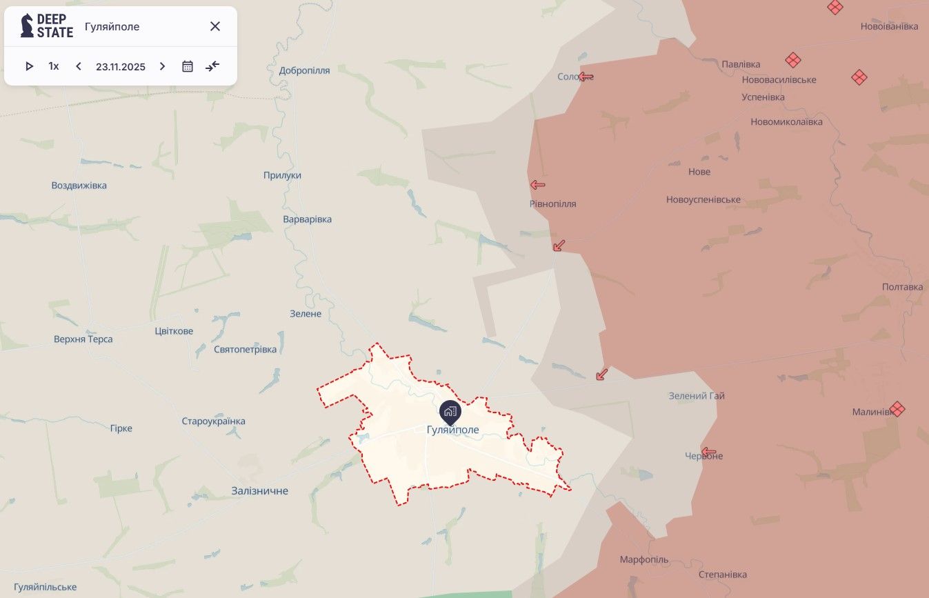 Сіра зона уже охоплює східні околиці Гуляйполя, хоча ворогу закріпитися там не вдалося, але лінія фронту вже притул під Гуляйполем. Росіяни за всяку ціну намагаються зайти в Гуляйполе до морозів, щоб закріпитися в міській забудові.