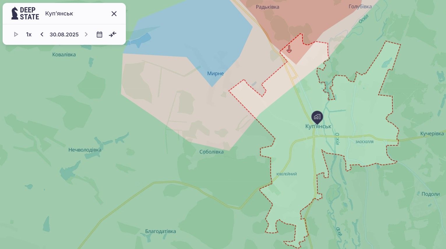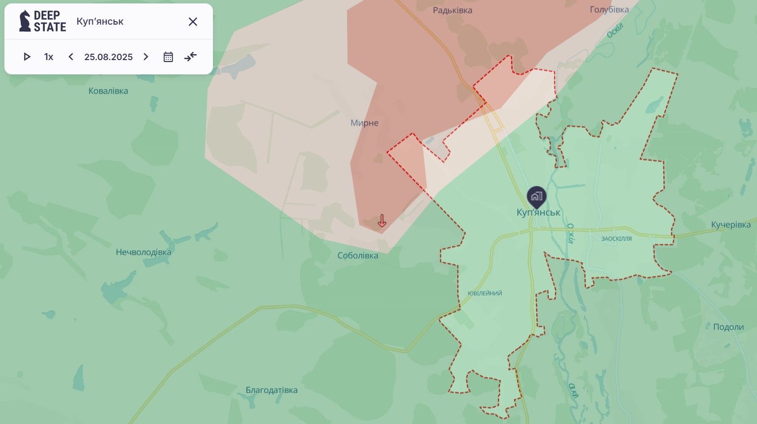 Головна мета росіян на Куп'янському напрямку – місто Куп'янськ. Однак традиційно ворожа армія намагається брати місто в так звані кліщі, що й почала робити біля Куп'янська. Проте минулого тижня Сили оборони України відкинули росіян у районі села Мирне біля Куп'янська та вибили їх з околиць міста на цій ділянці. Росіяни ще залишаються в Куп'янську в районі Радьківки.
