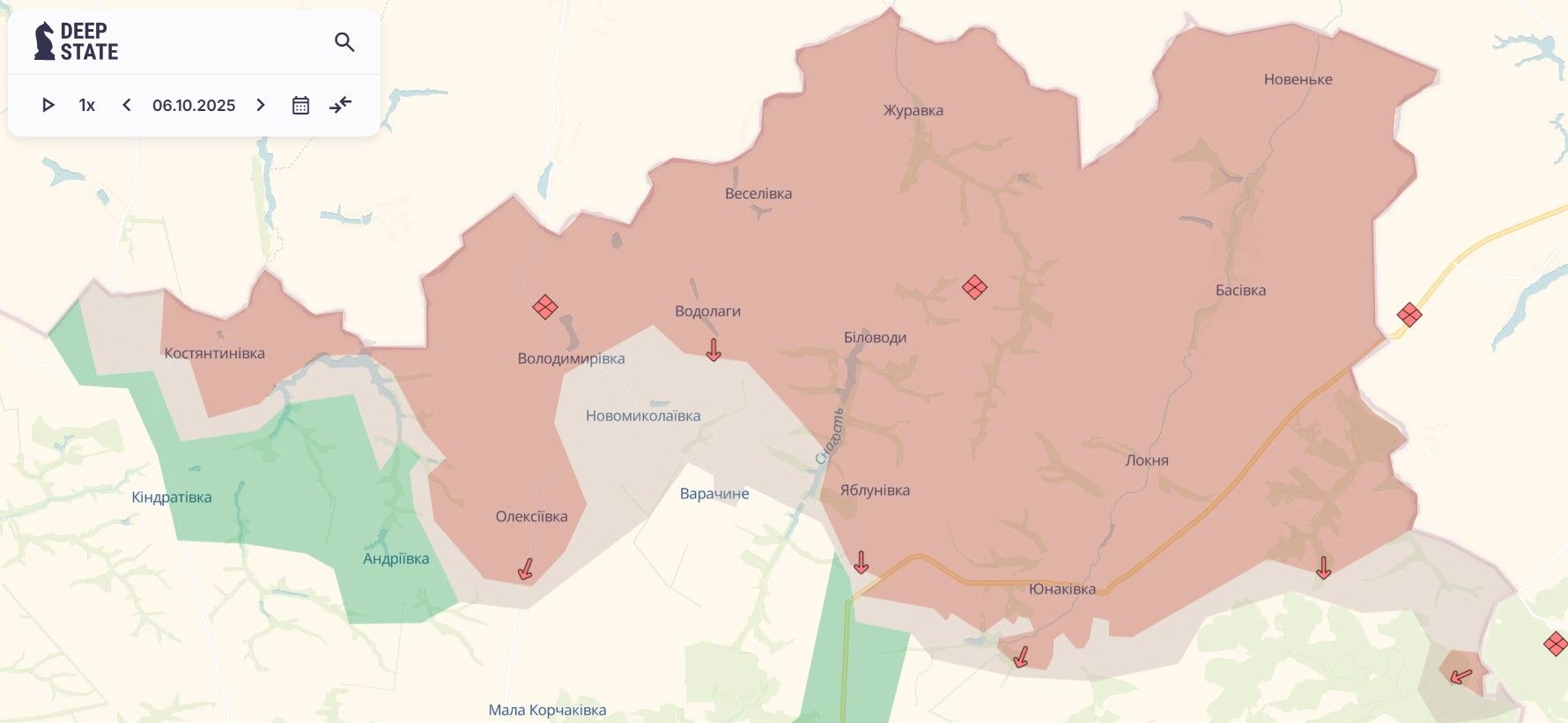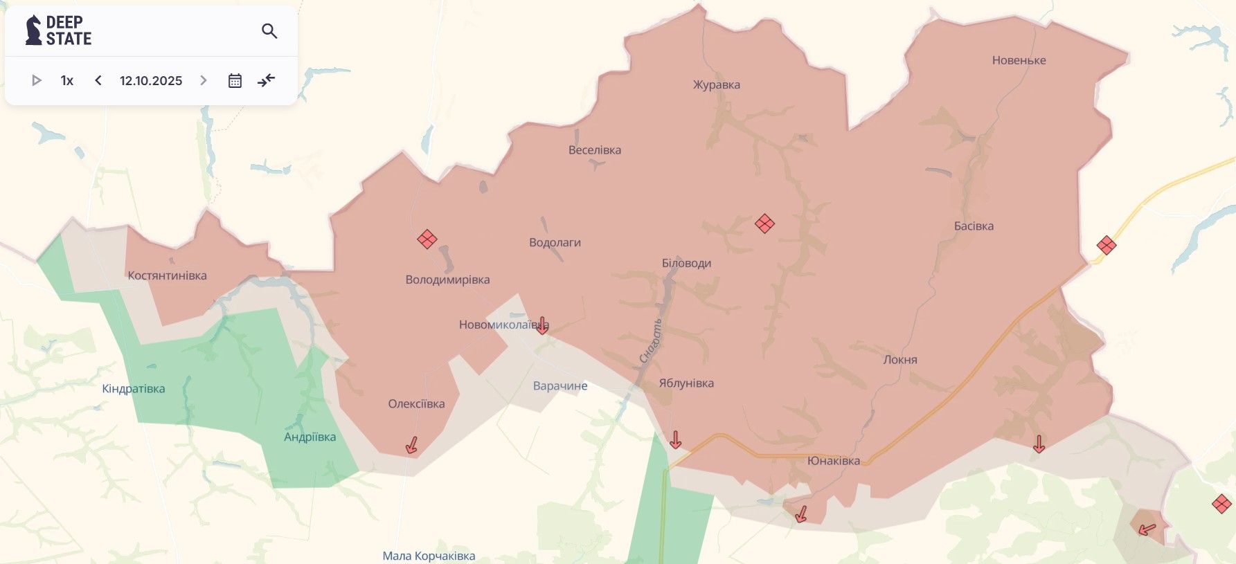 Бої на Сумщині не вщухають, проте лінія зіткнення тут в основному залишалася незмінною. Однак минулого тижня російські війська змогли просунутися в районі села Новомиколаївка, а Варачине перейшло у сіру зону.