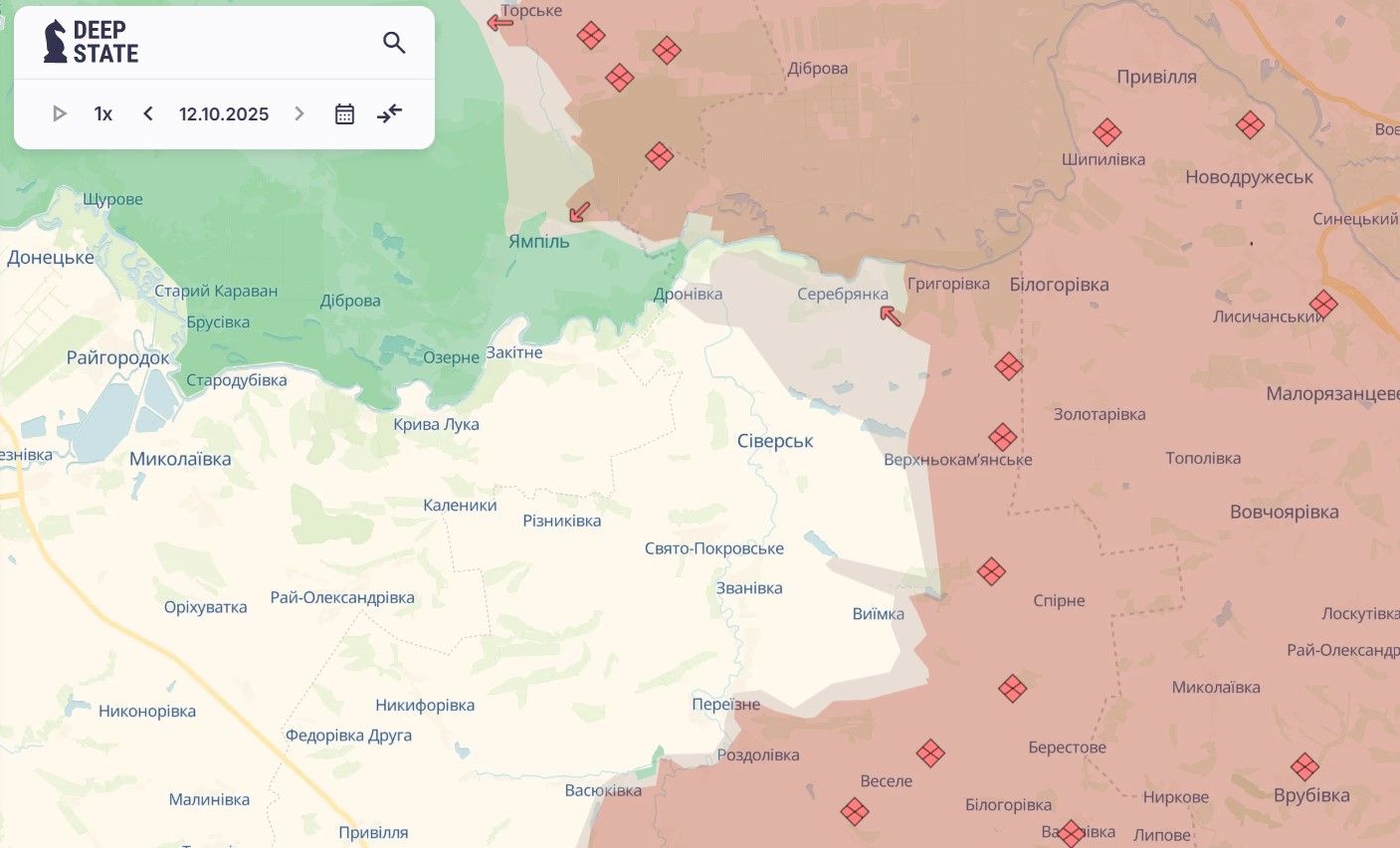 Минулого тижня ворожі війська просунулися поблизу селища Ямпіль. Також збільшилася сіра зона північніше Сіверська на межі із Серебрянським лісництвом.