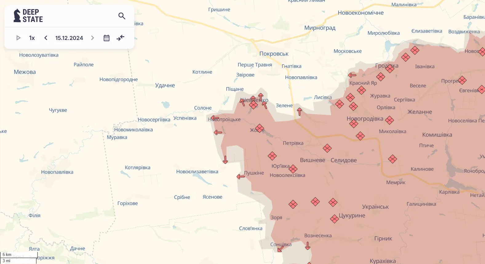 Про те, як змінилася ситуація на фронті за тиждень з 9 по 15 грудня, читайте в матеріалі 24 Каналу. Свій огляд проводимо за даними карти DeepStateMAP.