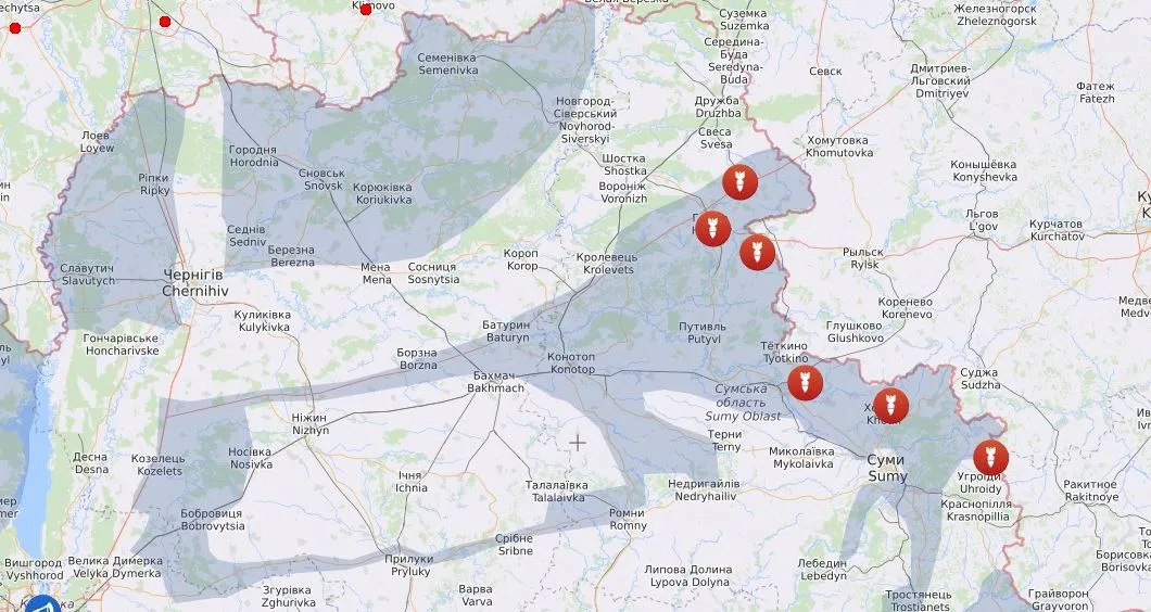 росія обстріляла прикордоння на Сумщині / Скриншот Liveuamap