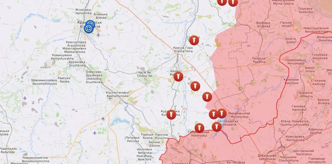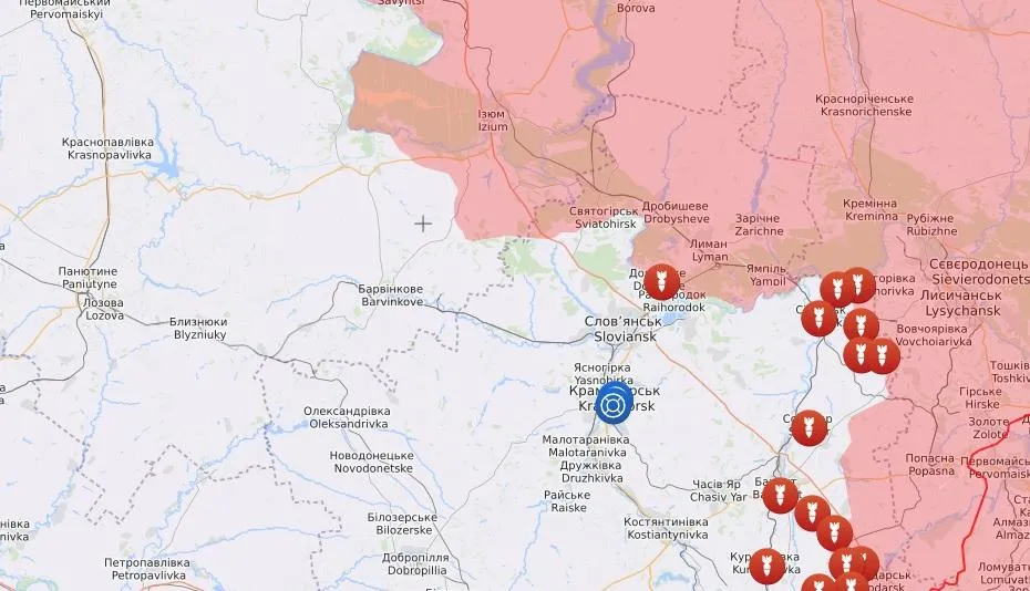 Ворог обстріляв населені пункти на Краматорському напрямку / Скриншот Liveuamap