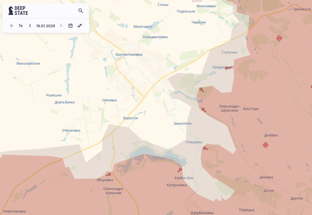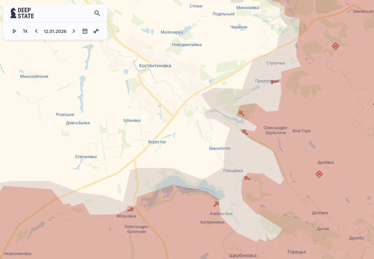 Ситуація в районі Костянтинівки / Карта DeepStateMAP