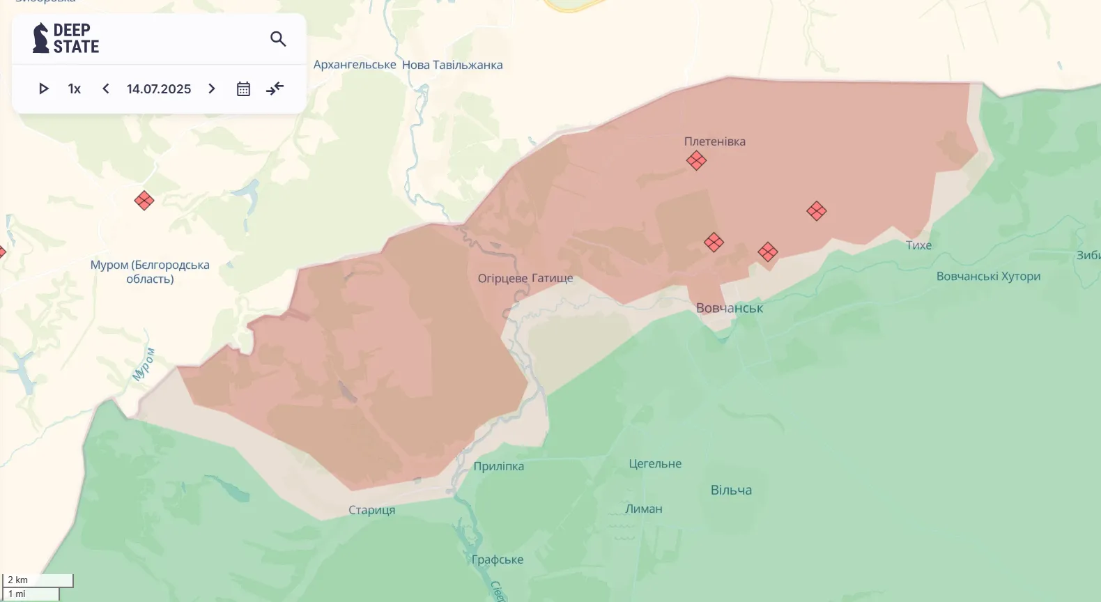 Також ворог намагається розширити плацдарм південніше Вовчанська, у районі Мілового. Минулого тижня окупантам вдалося просунутися біля Амбарного.