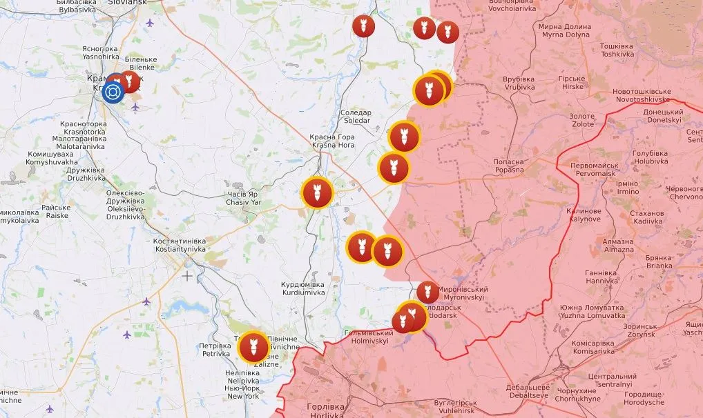 Ворог зосередив сили в напрямку Бахмута й Краматорська / Скриншот Liveuamap