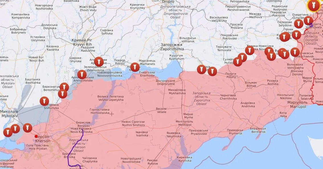 Окупанти ведуть оборону зайнятих раніше позицій на Південнобузькому напрямку / Скриншот Liveuamap