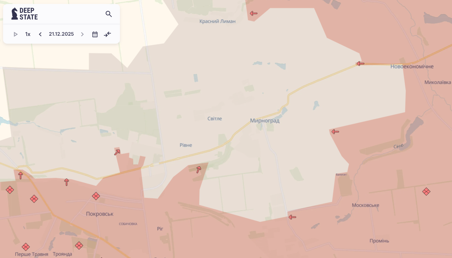 Покровський напрямок залишається одним із найважчих. Хоча минулого тижня змін на лінії зіткнення було менше, ніж у попередні, та суттєво розширилася сіра зона. Зараз вона охоплює не лише північ Покровська, але й більшість Мирнограда та села Рівне, Світле й Червоний Лиман.