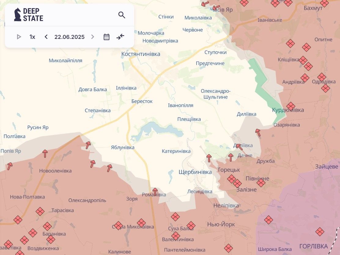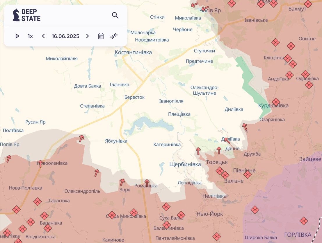 Минулого тижня ворог просунувся між Торецьком і Дачним, а також по трасі від Покровська до Костянтинівки й між цієї дорогою та трасою з Донецька.
