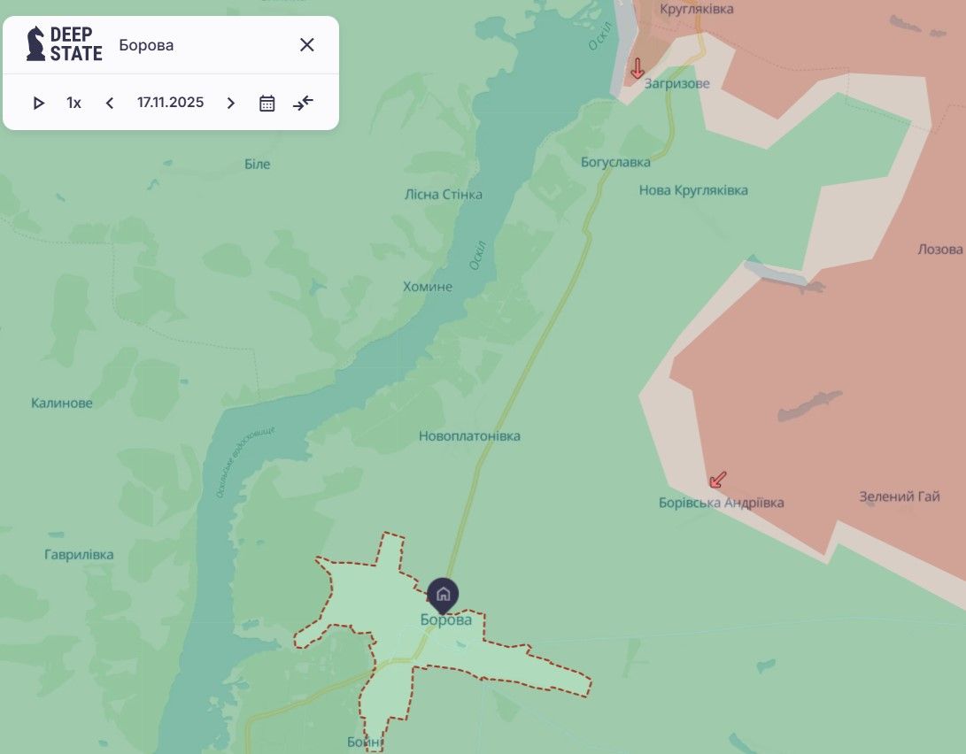 Росіяни просунулися в бік дороги, що веде від Борової до Куп'янська. Це ускладнює становище наших воїнів північніше Борової у Загризовому, Богуславці та Новій Кругляківці. Від лінії зіткнення до Борової – понад 3 кілометри.