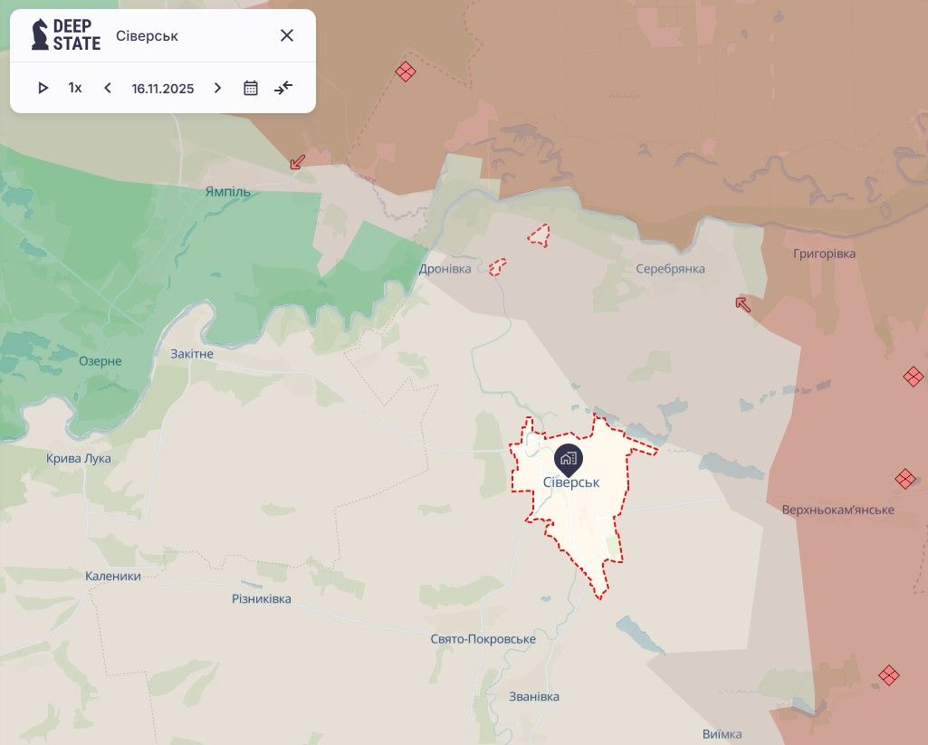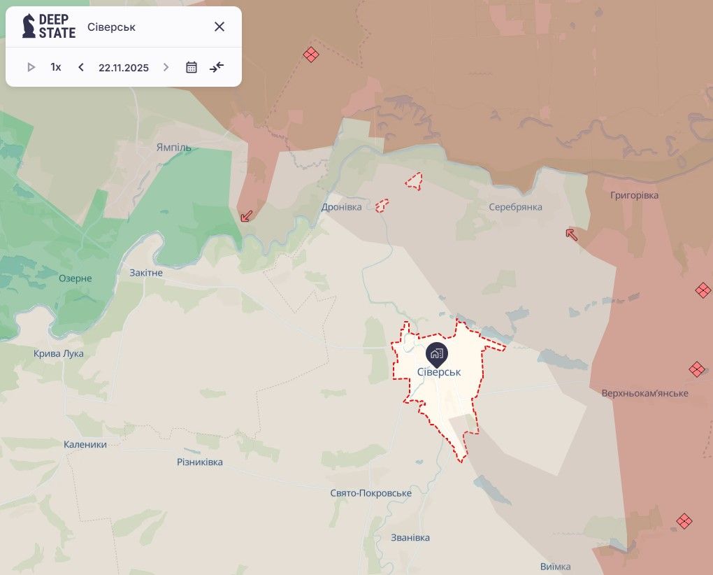 Ситуація в районі Сіверська / Карта DeepStateMAP