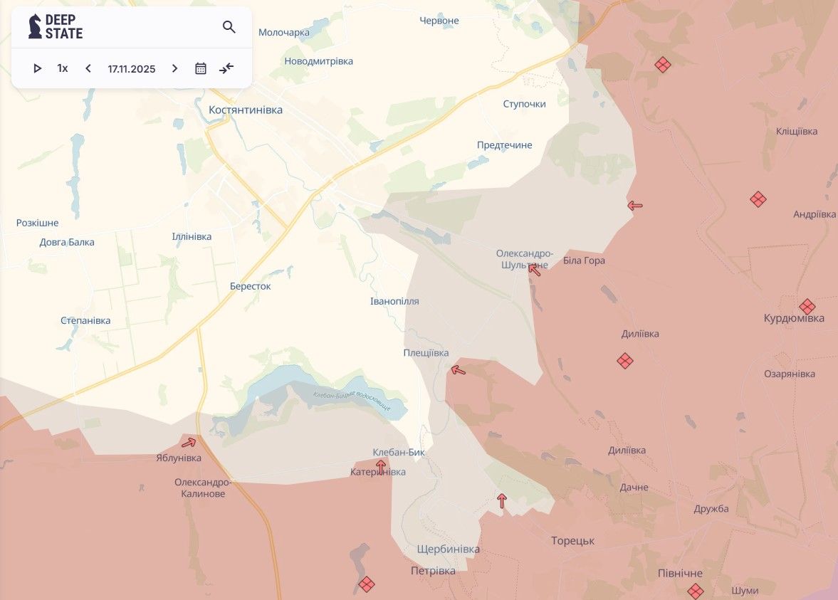 Ситуація в районі Костянтинівки / Карта DeepStateMAP