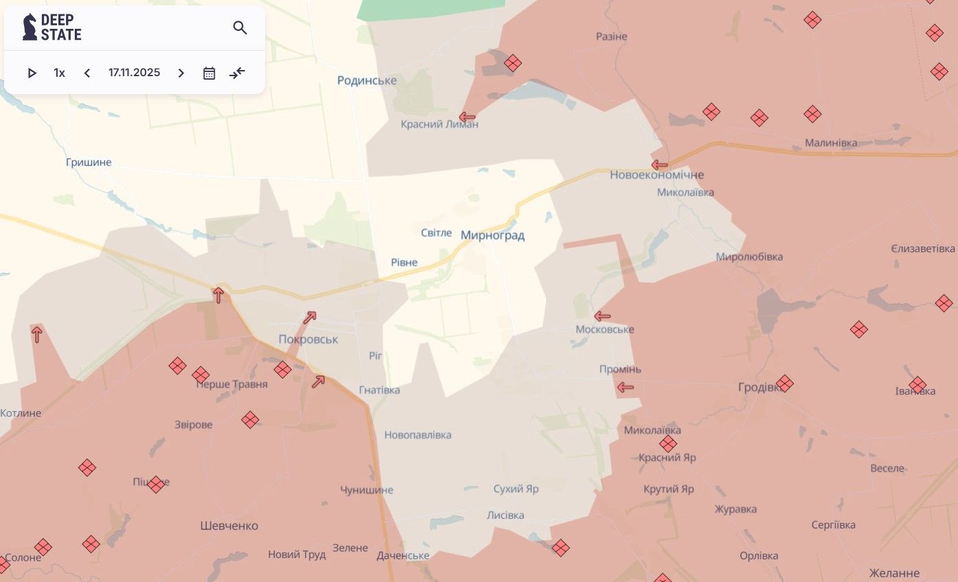 Про те, як змінилася ситуація на фронті за тиждень, з 10 по 17 листопада 2025 року, читайте в матеріалі 24 Каналу. Свій огляд карти бойових дій проводимо за даними DeepStateMAP.