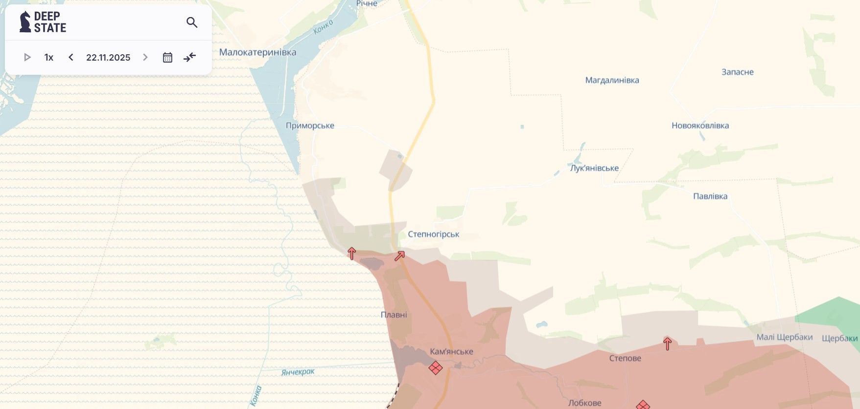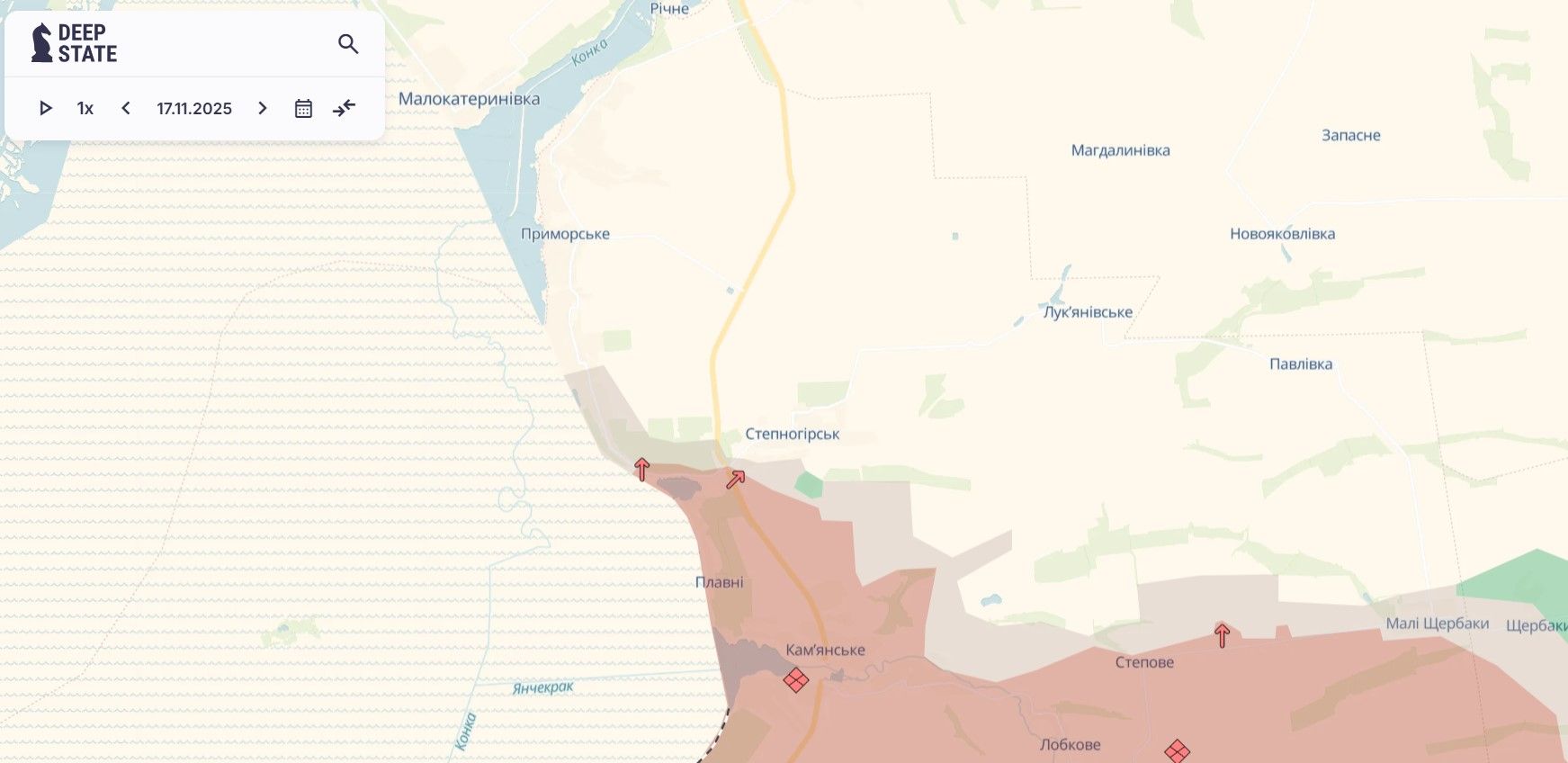 На Оріхівському напрямку також складна ситуація, особливо в районі Степногірська, де минулого тижня ворогу вдалося просунутися. Також через російські атаки розширилася сіра зона в бік Приморського та на північ по трасі Василівка – Запоріжжя.