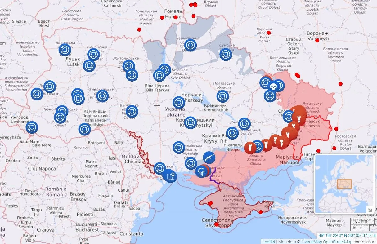Карта бойових дій станом на 28 липня / Фото Liveuamap
