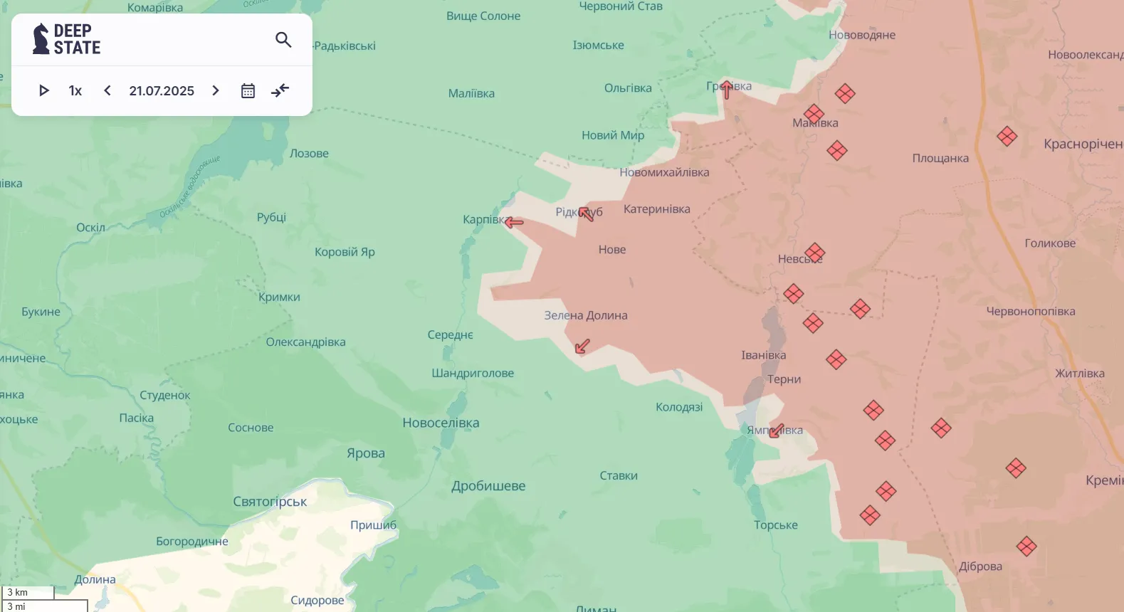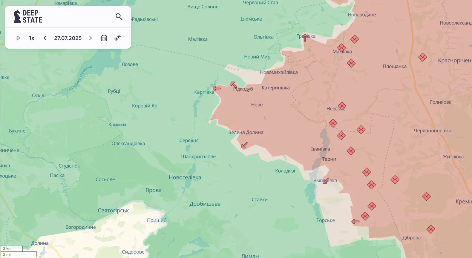 На Лиманському напрямку уточнено лінію зіткнення біля Карпівки та Рідкодуба. Окупанти мали успіх біля Торського. Там помітно збільшилася сіра зона у напрямку Зарічного.