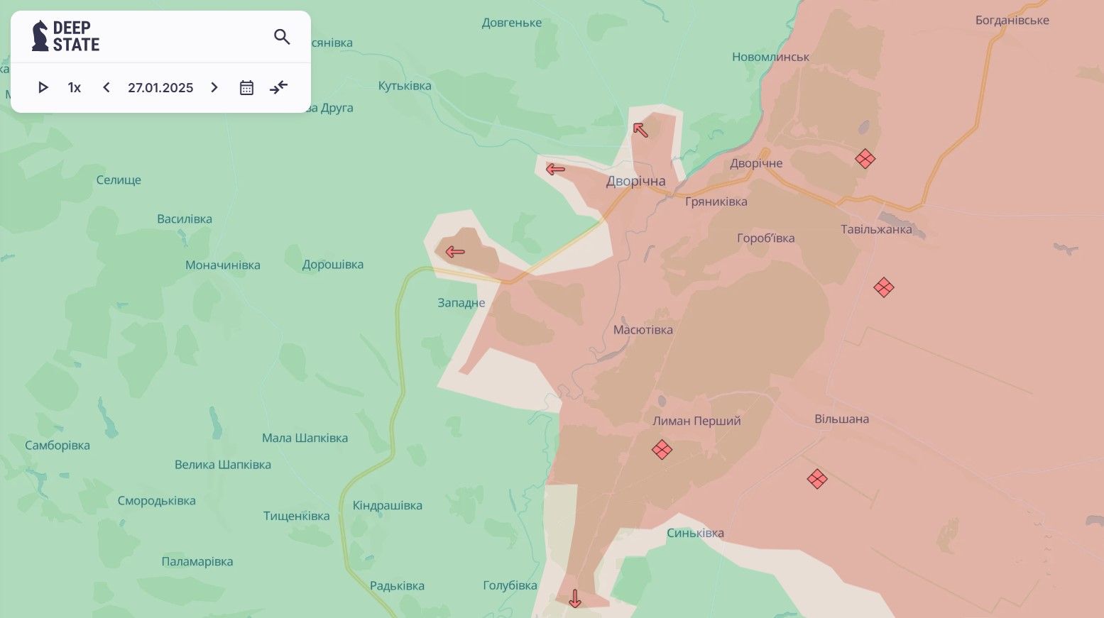 На Куп'янському напрямку ситуація складна. Північніше Куп'янська тривають важкі бої у Дворічній. Росіяни від минулого тижня заявляють про нібито повне захоплення Дворічної, хоча тривають бої у центральній частині селища.