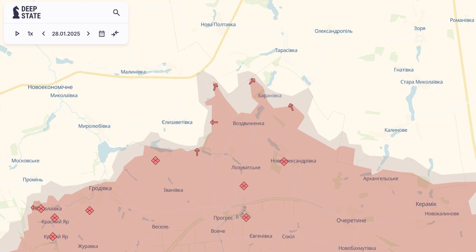 Щомісяця аналітики DeepState ведуть підрахунок того, скільки української території протягом місяця окупував ворог. У січні 2025 року росіяни захопили 325 квадратних кілометрів української території – мова йде про Донеччину, Харківщину та Луганщину.