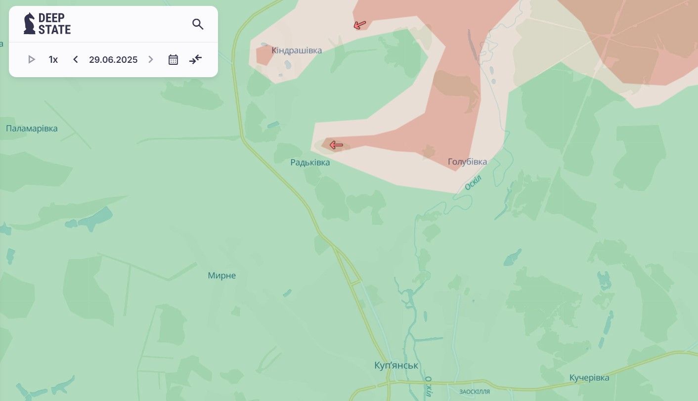 Ба більше, з Голубівки ворог вирішив не тиснути на околиці Куп'янська, а "йти в обхід", прорвавшись в Радьківку. Поки подальші наміри противника спрогнозувати важко, адже серед варіантів – прорив у Кіндрашівку з півдня, або ж наступ до траси, що веде з Дворічної для нових атак на Куп'янськ чи навіть спроби оточення міста.