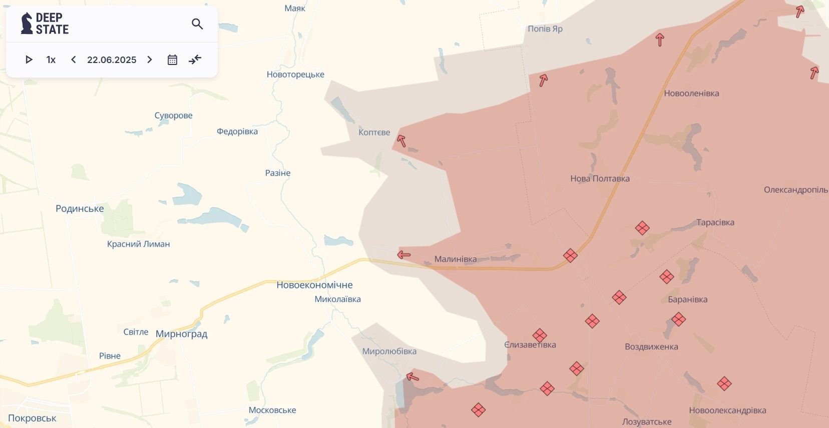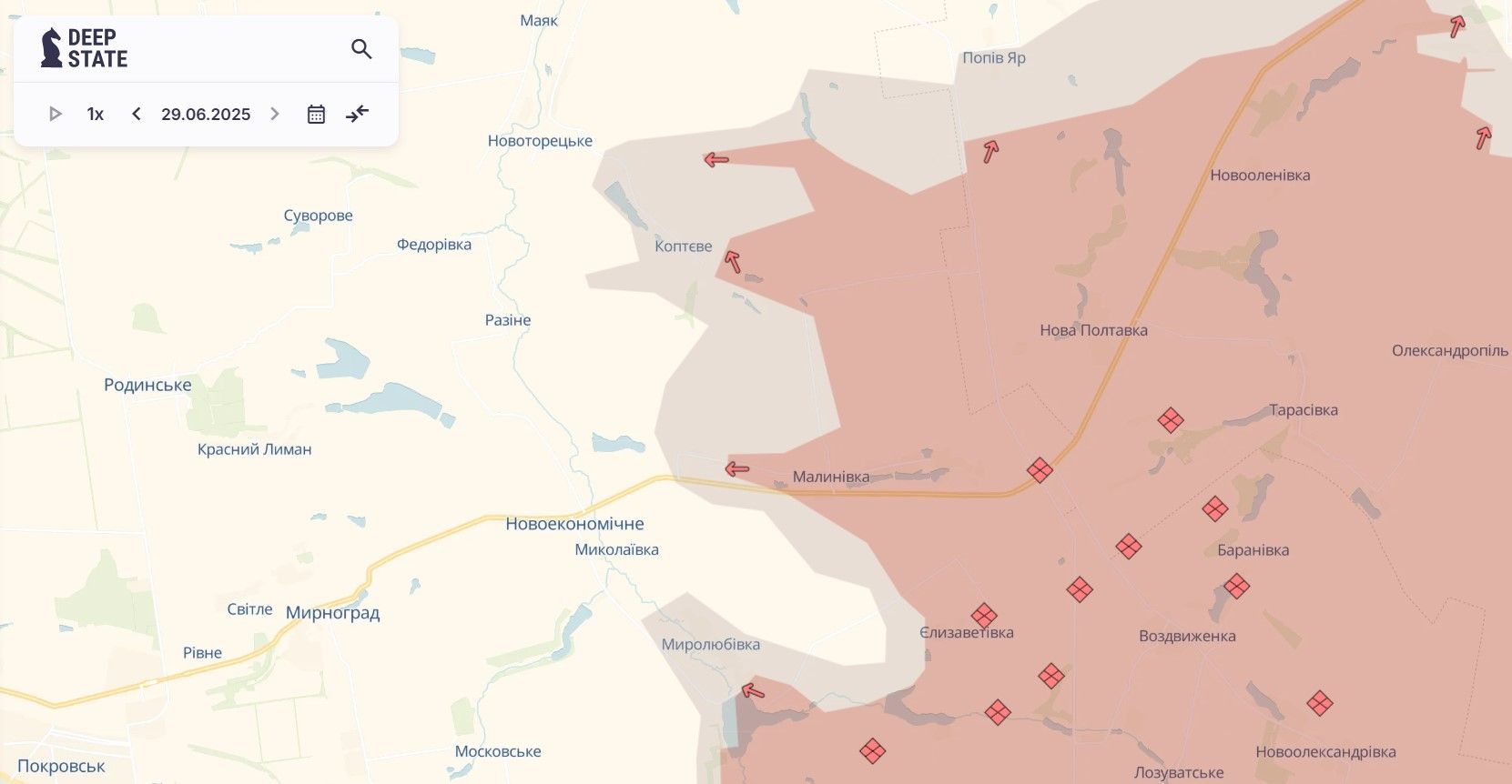 На Покровському напрямку спроби росіян наблизитися до Покровська зазнають краху, тому ворог зосереджує зусилля на атаках зі сторони траси Покровськ – Костянтинівка. Зараз росіяни впритул підійшли під Новоекономічне – селище, яке є сусідом Мирнограда.