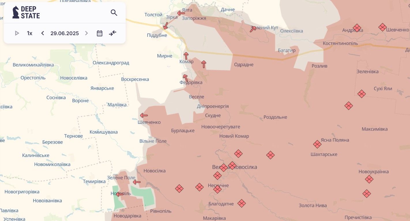 В районі сіл Запоріжжя та Ялта російські війська підійшли під адмінмежу з Дніпропетровщиною. Сіра зона розширилася впритул до кордонів областей.