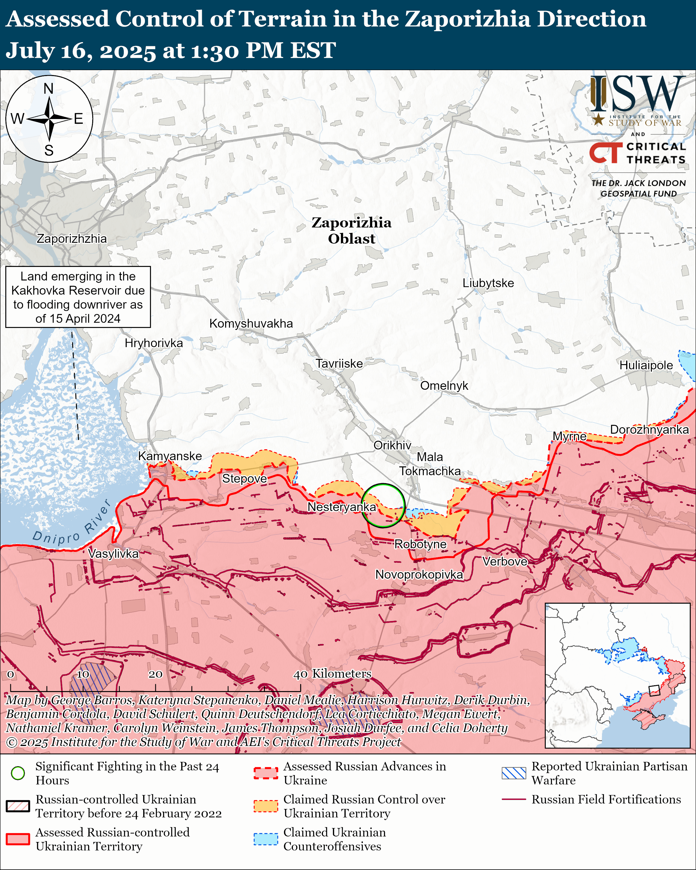 - Російські війська нещодавно просунулися на Новопавлівському напрямку. Геолокаційні відеозаписи, опубліковані 16 липня, свідчать, що росіяни нещодавно захопили Новохатське.