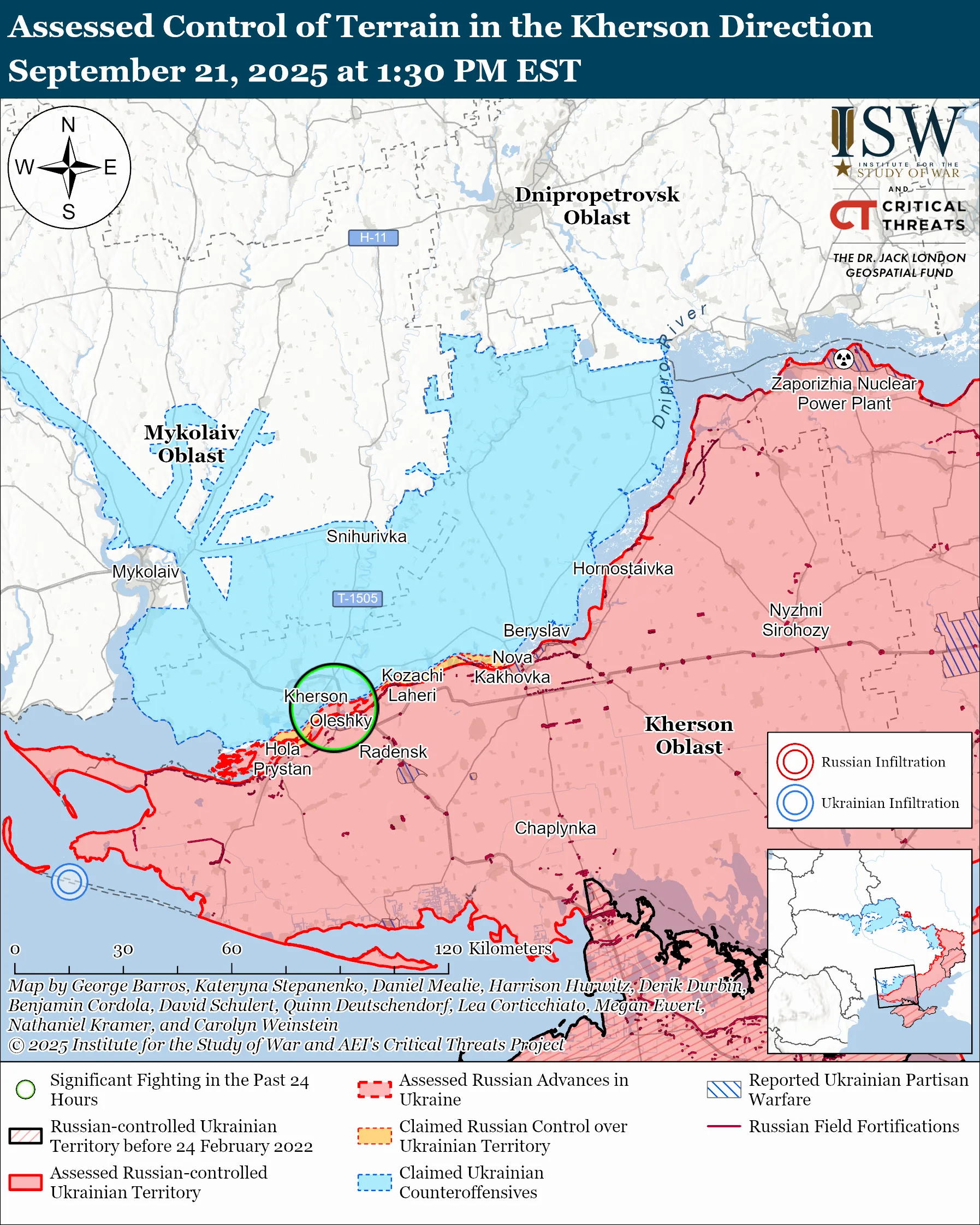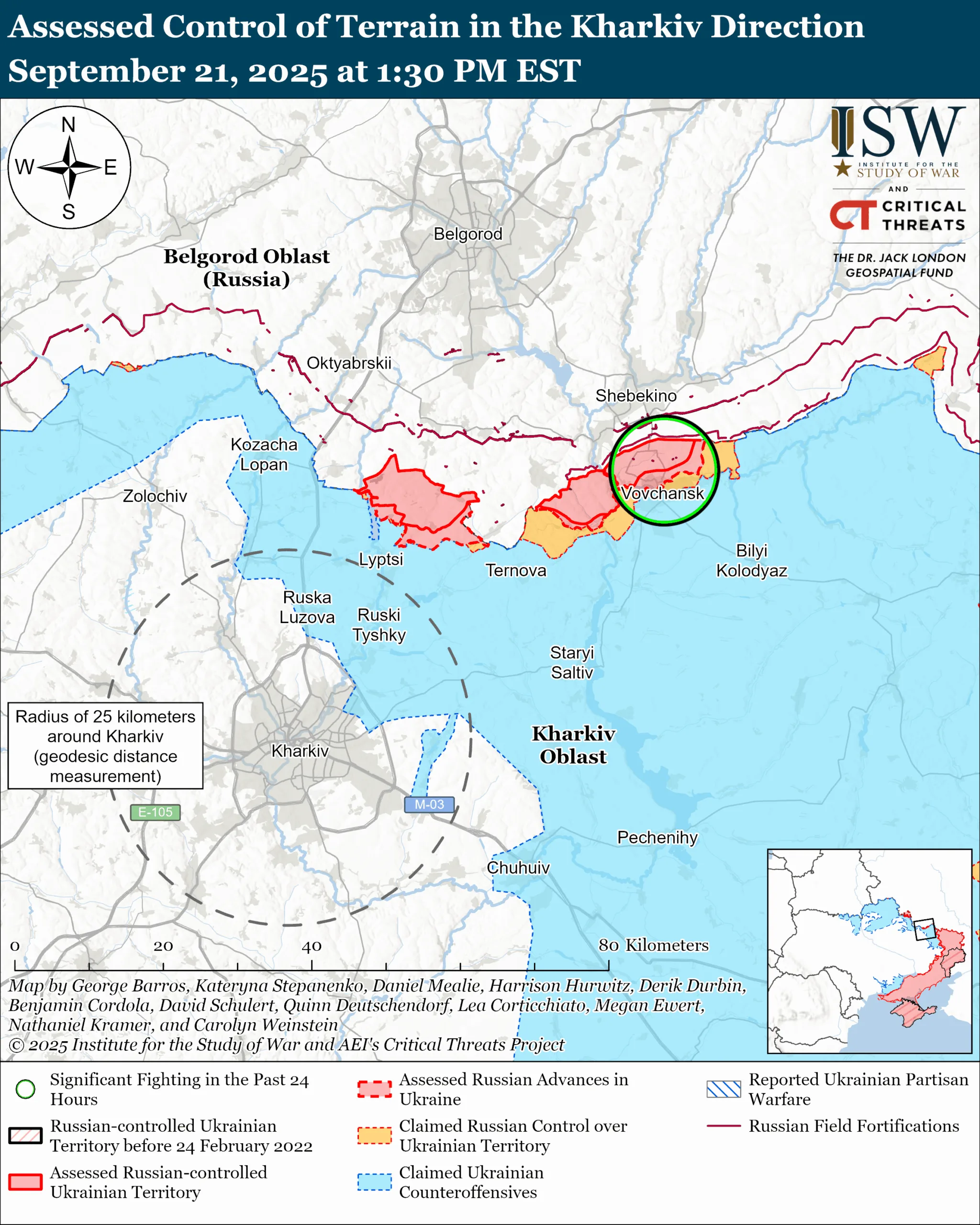 Ситуація на фронті станом на 22 вересня 2025 року / Карти ISW