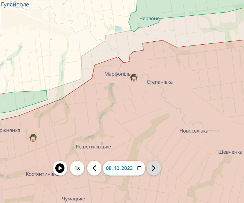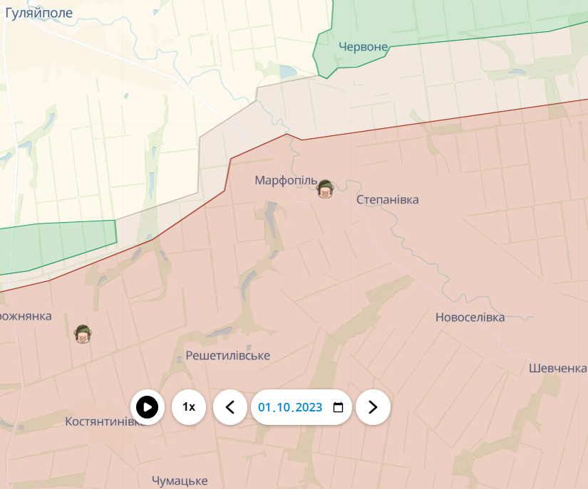 Що цікаво, ще в березні 2022 року українські військові змогли звільнити села Зелений Гай, Червоне, Веселе й Затишне. Після цього й досі протягом понад півтора року ділянка фронту між Червоним і Марфополем практично не зазнавала змін – хіба що зовсім мінімальних.