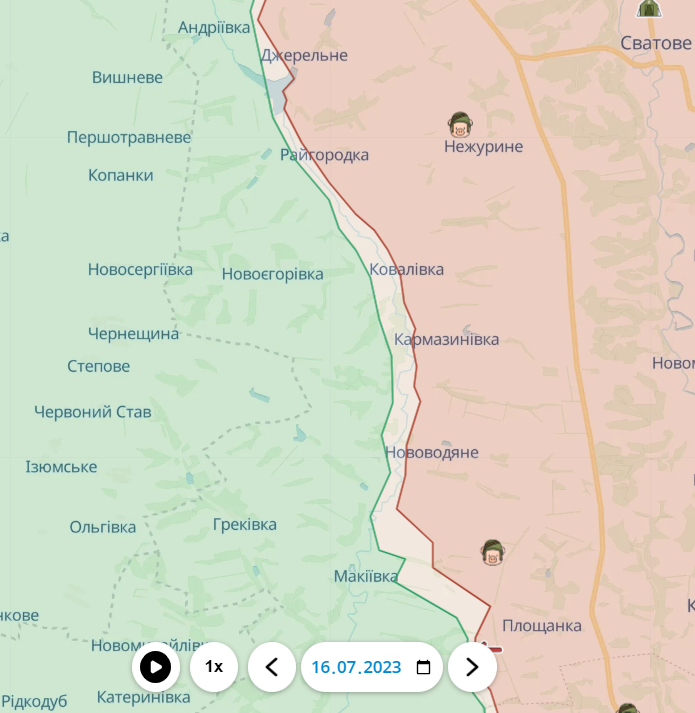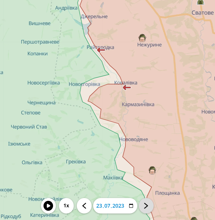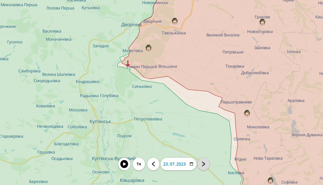 Так само мінімальні, але все ж успіхи у ворога є й на напрямку Куп'янська. Тут за минулий тиждень ворог зміг просунутися й закріпитися південніше від Масютівки. В окремих місцях лінія фронту вирівнялася з річкою Оскіл.