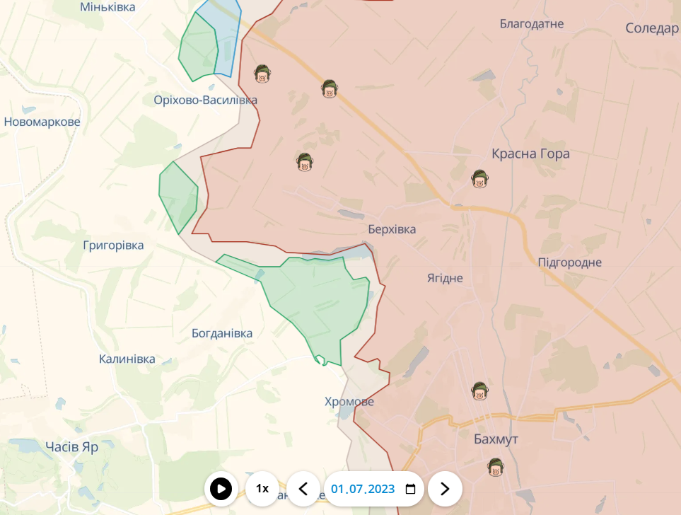 Певних успіхів Збройні Сили України змогли досягти й на північ від Бахмута. За останній тиждень наші військові змогли відкинути ворога в районі між Берхівкою, Ягідним та Хромовим.