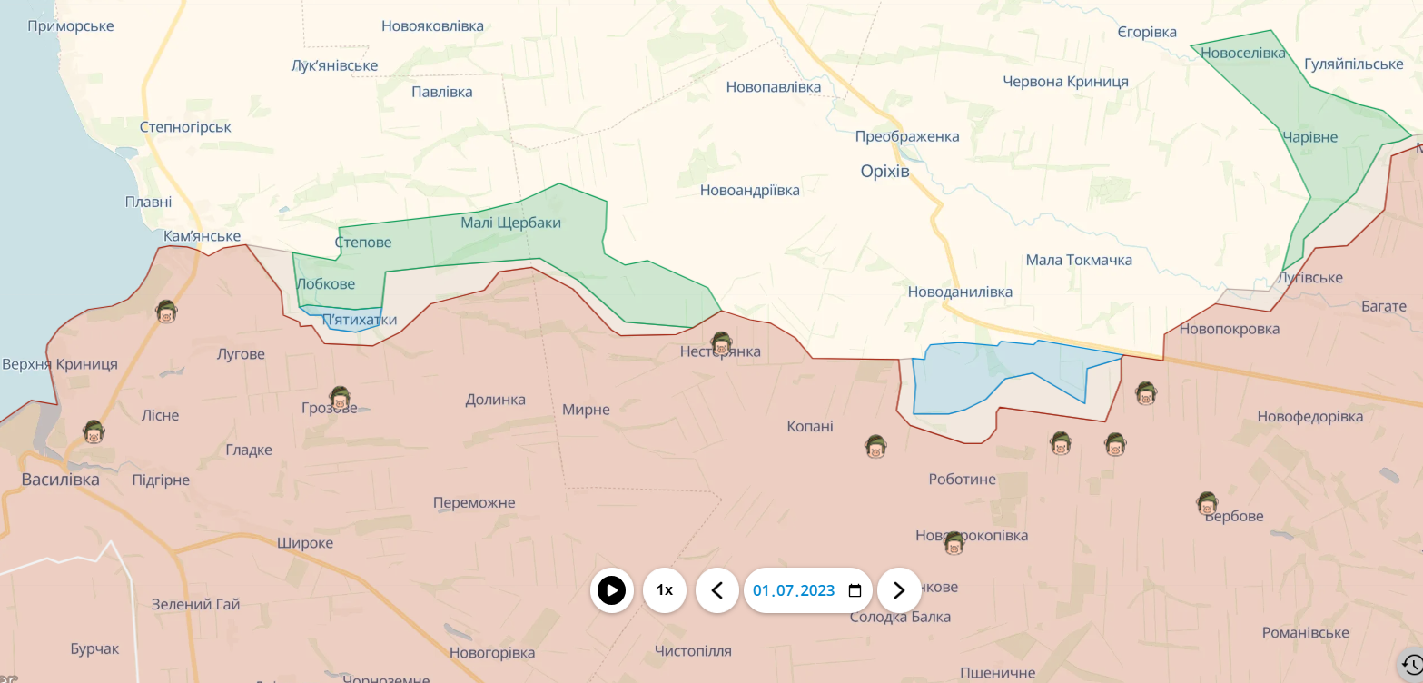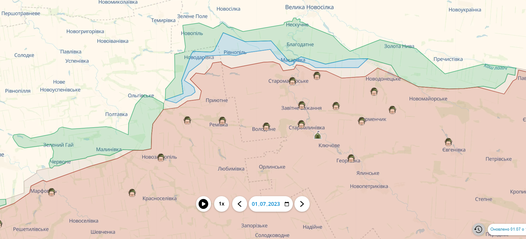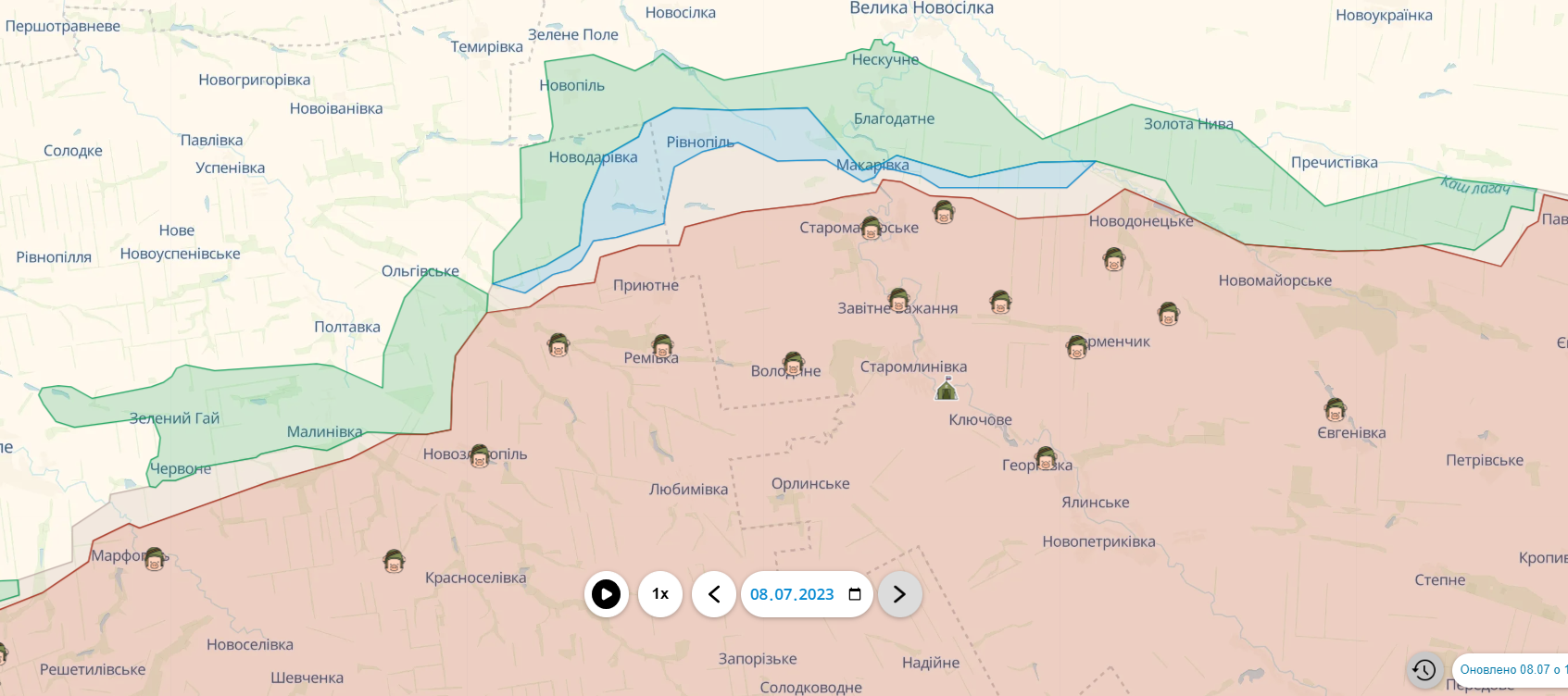 Так само помітне просування українських військових і на межі Донецької та Запорізької областей. Тут наші бійці змогли відкинути ворога від звільненого 2 тижні тому Рівнополя.
