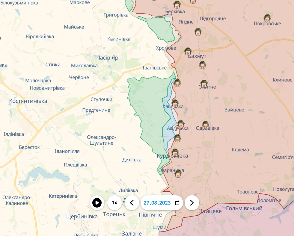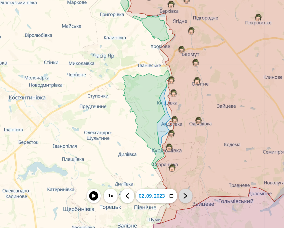 Наступ ЗСУ на півдні Бахмута: дивіться карту