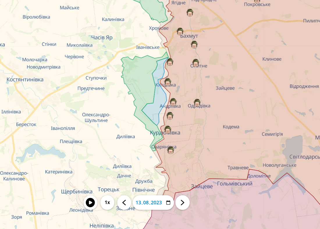 Після кількох тижнів перерви українські війська знову впевнено просуваються на південному фланзі Бахмута. За останній тиждень успіхи помітні передовсім на околицях Андріївки та в самій Кліщіївці.