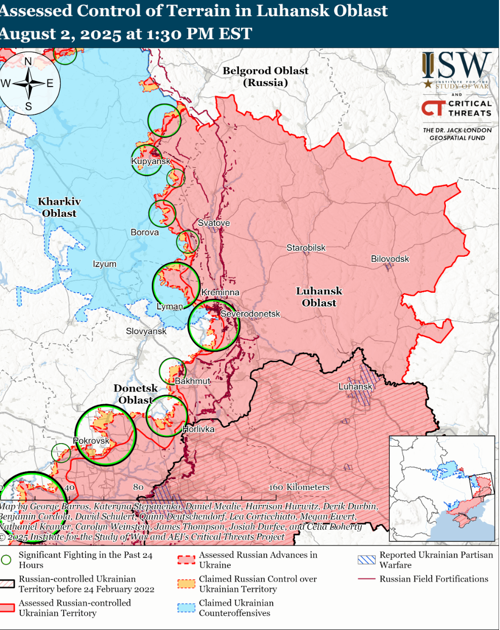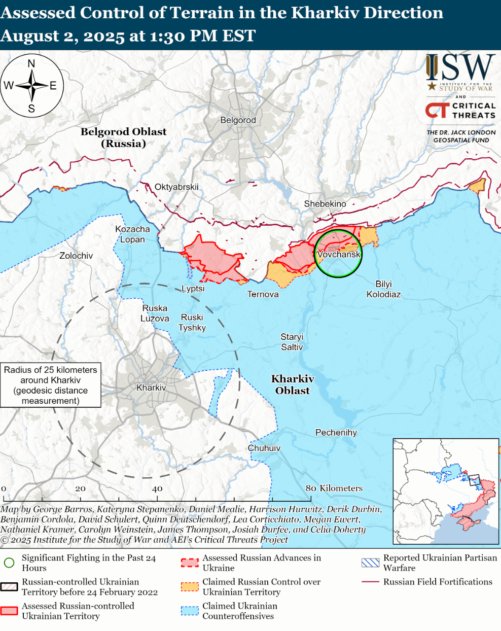 - Аналітики інформують, що ні українські, ні російські джерела не повідомляли про наземну активність у напрямку Великого Бурлука 2 серпня.