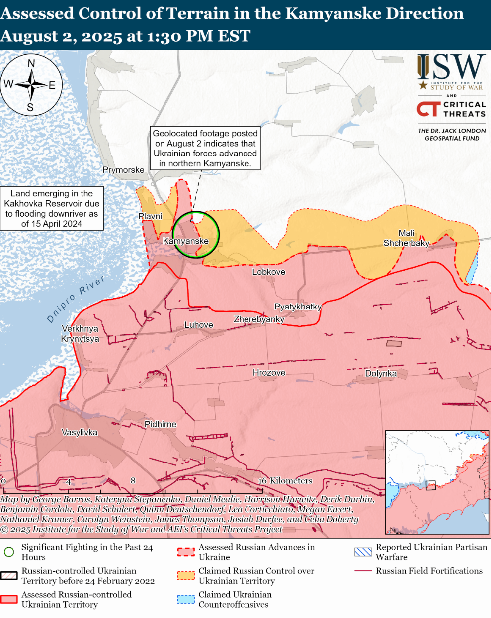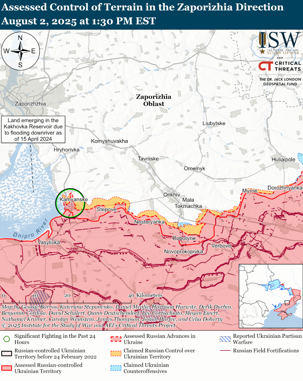 - Українські війська нещодавно просунулися на захід Запорізької області. Геолокаційні відеозаписи, опубліковані 2 серпня, свідчать про те, що Сили оборони нещодавно просунулися в північній частині Кам'янського (на південний захід від Оріхова).