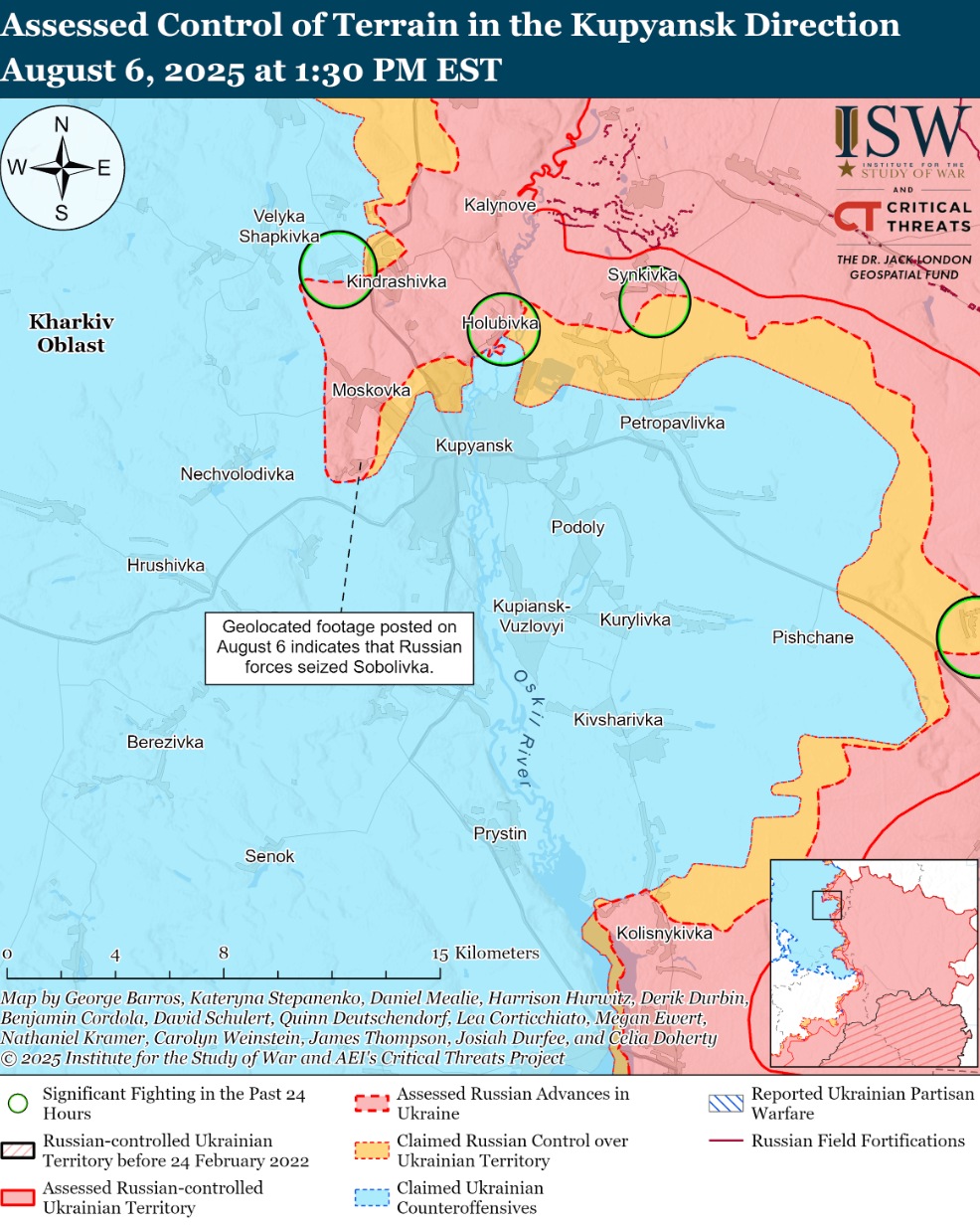 - Ні українські, ні російські війська не повідомляли про наземну активність у напрямку Великого Бурлука 6 серпня.