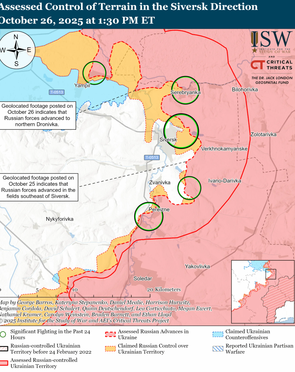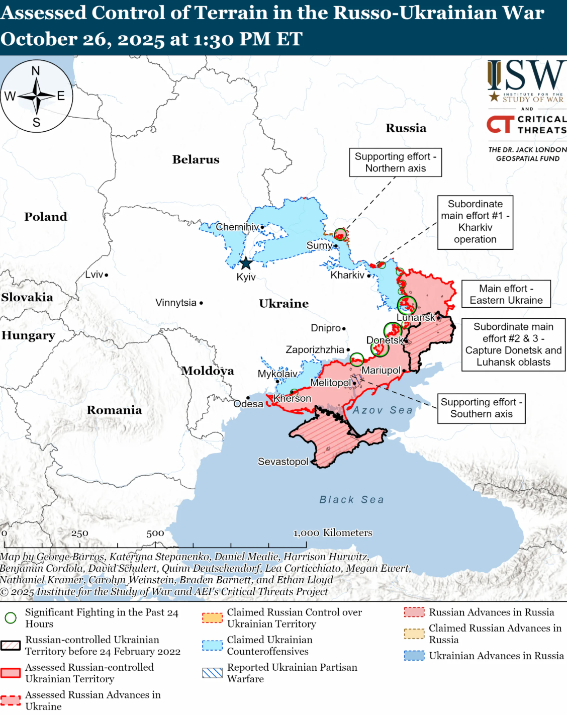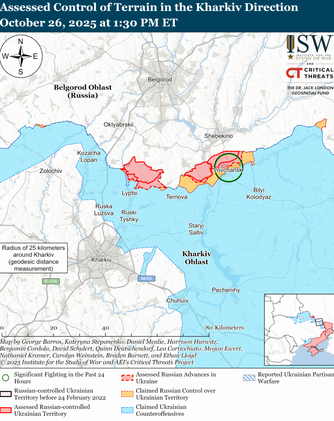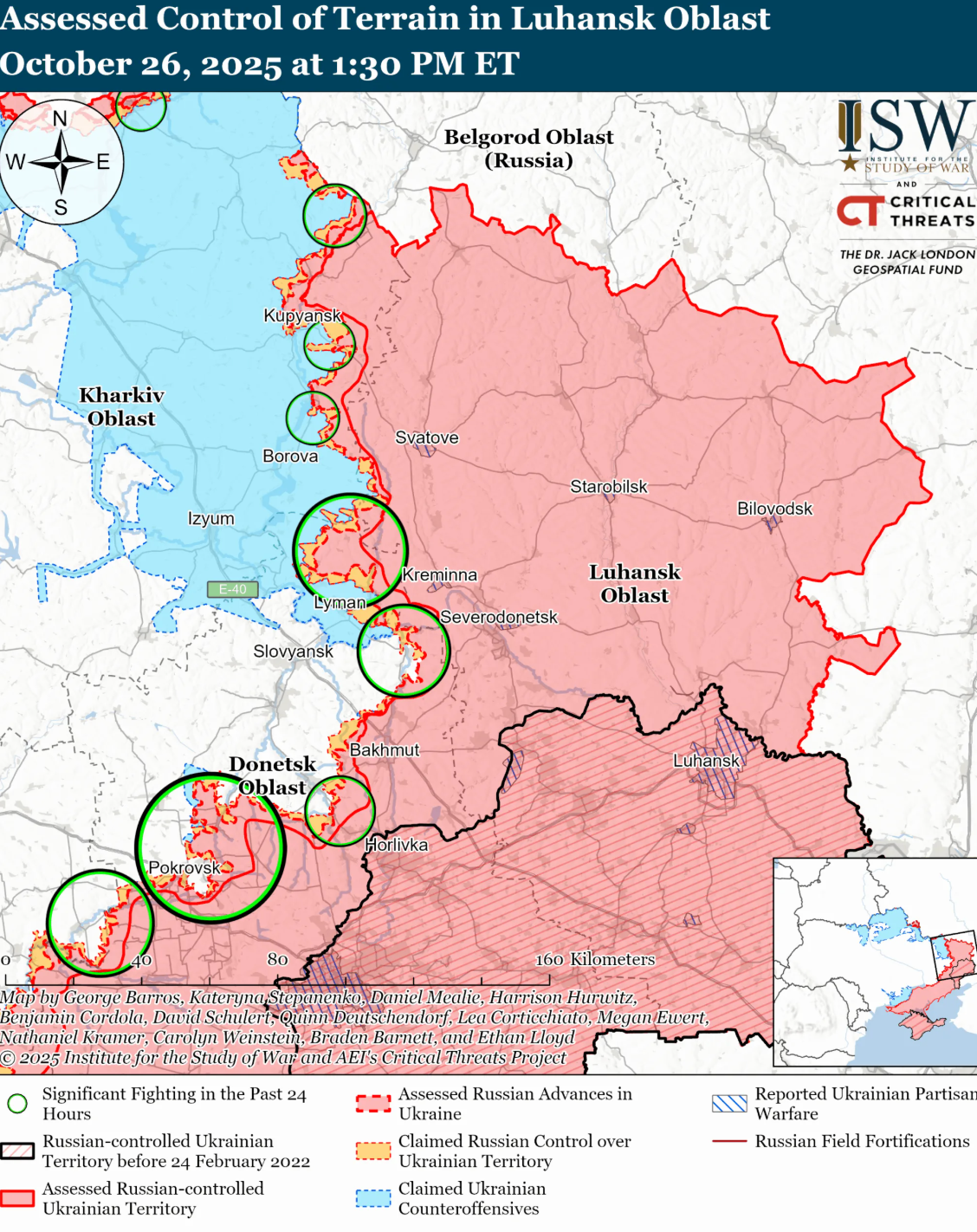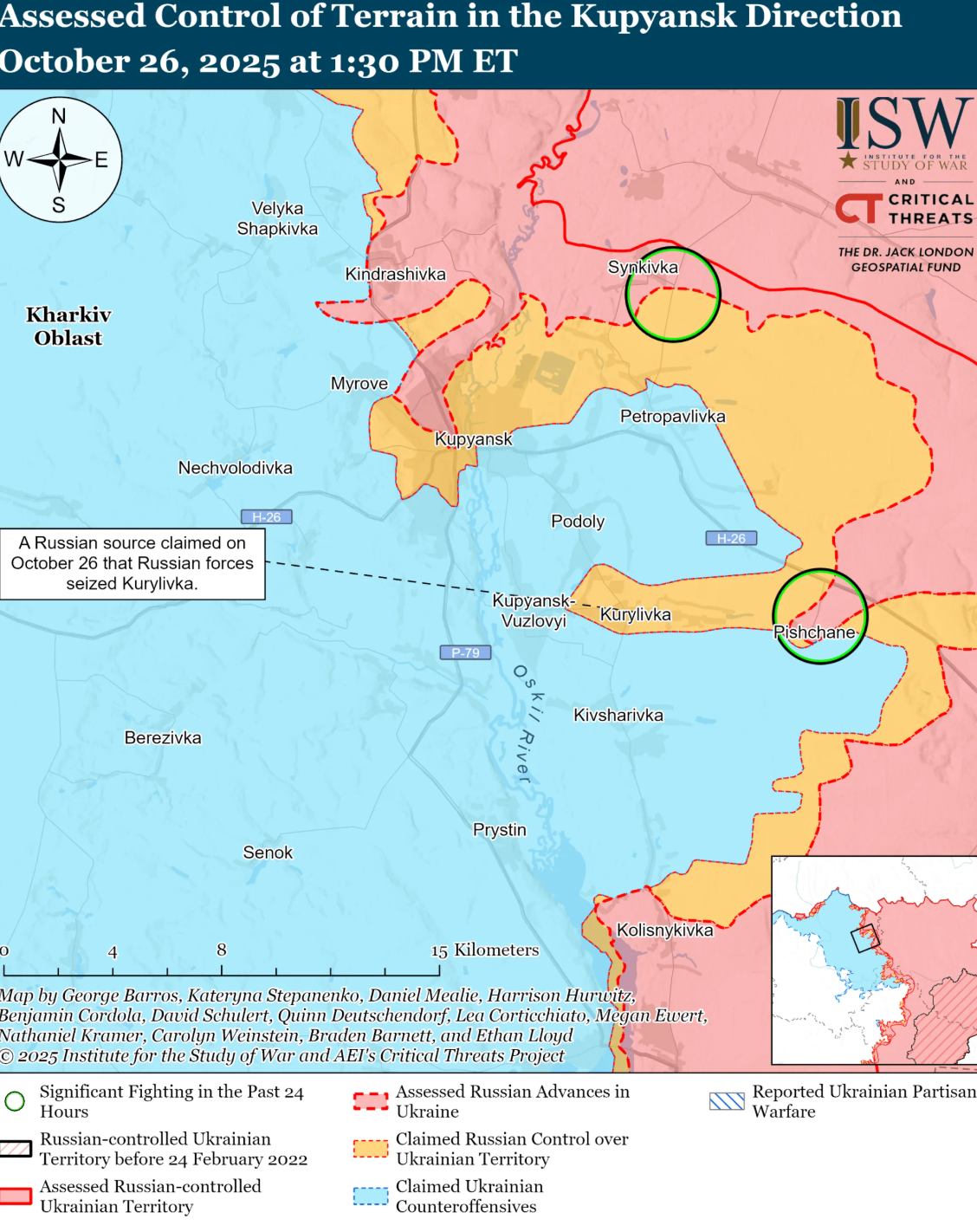Аналітики зазначають, що українські війська утримували позиції або нещодавно просунулися на Куп'янському напрямку. Геолокаційні відеозаписи, опубліковані 26 жовтня, вказують на те, що ЗСУ утримують позиції на схід від Піщаного (на південний схід від Куп'янська), району, в якому російські джерела раніше стверджували, що їхні війська утримують позиції.