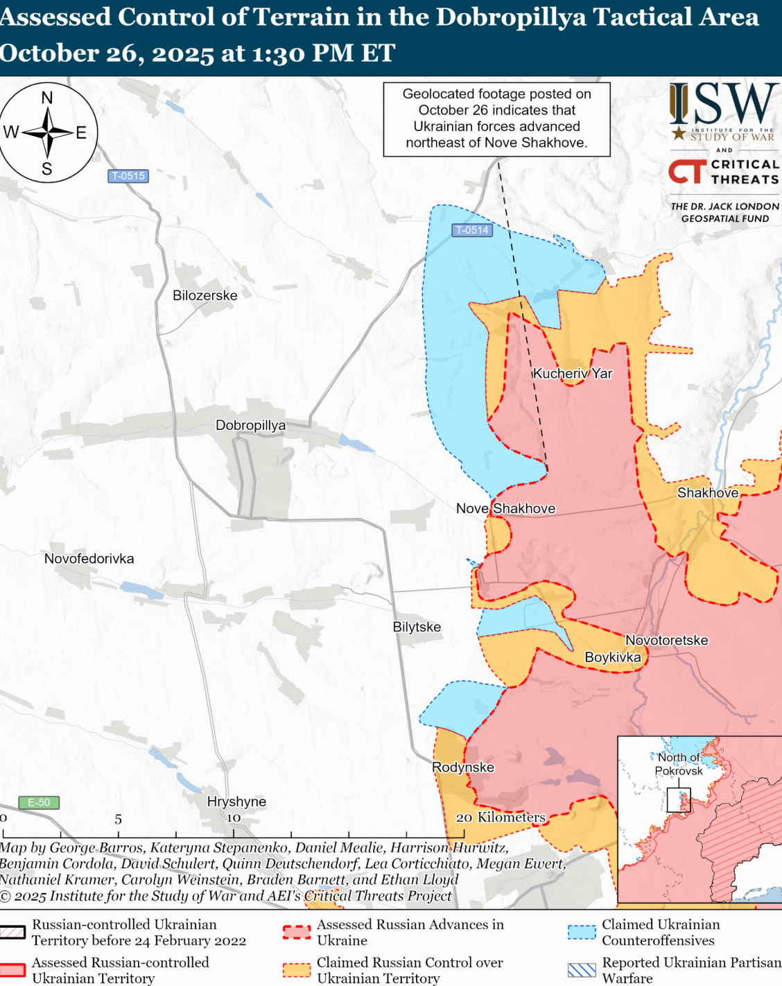 Українська армія нещодавно просунулася в тактичному районі Добропілля. Геолокаційні відеозаписи вказують на те, що ЗСУ просунулися на північний схід від Нового Шахова (на схід від Добропілля).